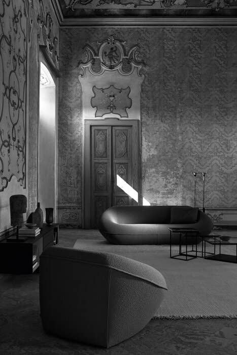 Название созвучно итальянскому слову "тортеллини", что подчеркивает пластичность дизайна. Силуэт дивана обладает скульптурной выразительностью, лишенной строгих линий. Каждая деталь продумана для создания целостного образа.