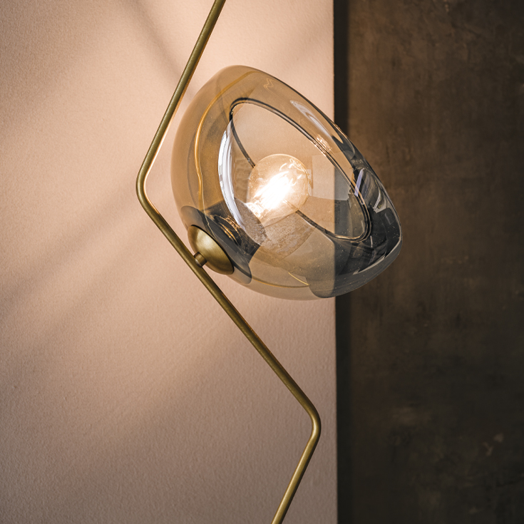 Торшер Tramonto сочетает минимализм и изящество в лаконичном дизайне. Тонкий латунный шток удерживает полусферический плафон из дымчатого хрусталя, создающий мягкое рассеянное освещение. Ретро-эстетика плафона контрастирует с современной строгостью металлической стойки, придавая светильнику утонченный характер.