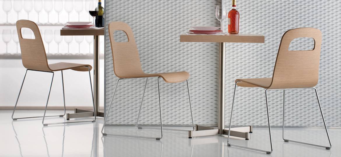 В коллекцию Trend входят обеденные и барные стулья с основаниями на четырех ножках или ножках-салазках и с множеством отделок. Сиденье и спинка стула Trend выполняются из дуба в четырех вариантах отделки: беленый дуб, венге, зебрано или дерево. Ножки изготавливаются из хромированной или матированной стали. Ножки доступны в двух вариантах: салазки или четыре круглые ножки. Благодаря отверстию в спинке стул удобно переносить и передвигать. Детали о данной модели уточняйте у менеджеров или в PDF инструкции.