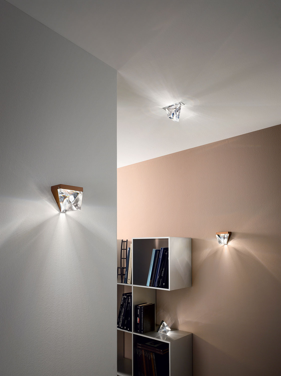 Эта коллекция декоративных ламп из хрустального стекла была создана молодыми дизайнерами Девисом Бузато и Джулией Чиккарезе. Коллекция Tripla основана на базовой форме треугольника, которая эволюционирует в объемный элемент пирамиды. Благодаря своим четырехгранным контурам светильники гармонично дополняют коллекцию ламп геометрических форм Fabbian. Элегантные и практичные светильники, благодаря своей универсальности, утонченности и модульности, гармонично вписываются в интерьеры любого стиля и могут находить самое различное применение, в зависимости от желания и фантазии декоратора. Цоколь предназначен для светодиода и оснащен блоком питания с регулятором яркости.