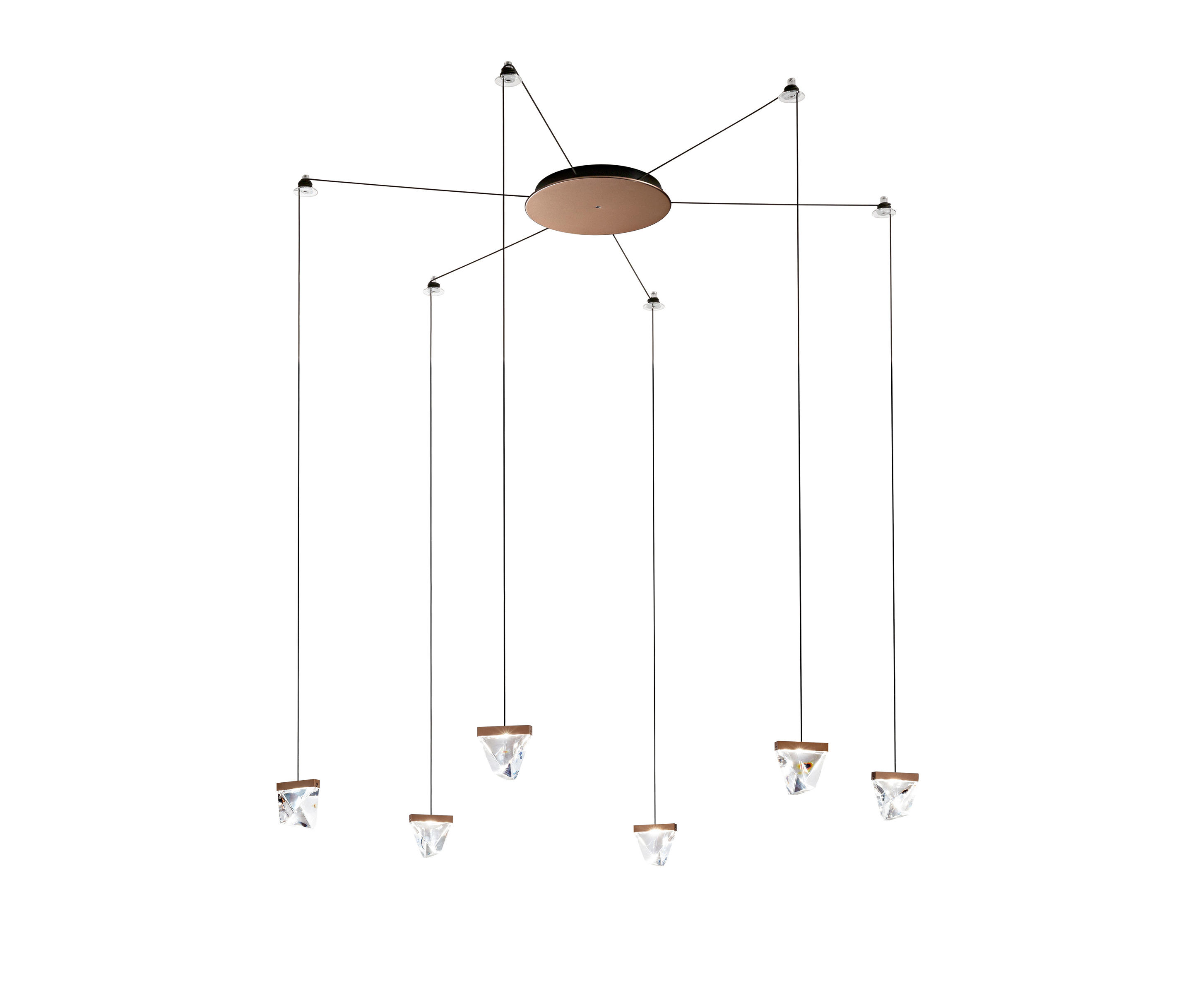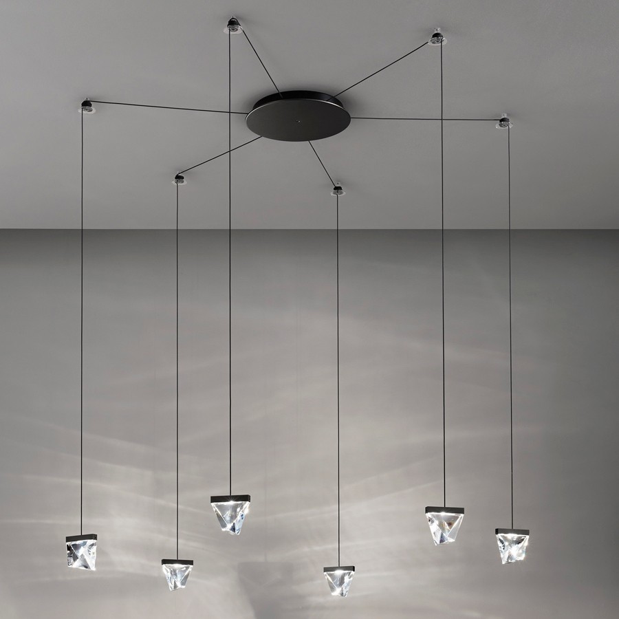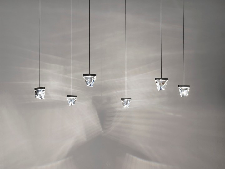 Эта коллекция декоративных ламп из хрустального стекла была создана молодыми дизайнерами Девисом Бузато и Джулией Чиккарезе. Коллекция Tripla основана на базовой форме треугольника, которая эволюционирует в объемный элемент пирамиды. Благодаря своим четырехгранным контурам светильники гармонично дополняют коллекцию ламп геометрических форм Fabbian. Элегантные и практичные светильники, благодаря своей универсальности, утонченности и модульности, гармонично вписываются в интерьеры любого стиля и могут находить самое различное применение, в зависимости от желания и фантазии декоратора. Цоколь предназначен для светодиода и оснащен блоком питания с регулятором яркости.