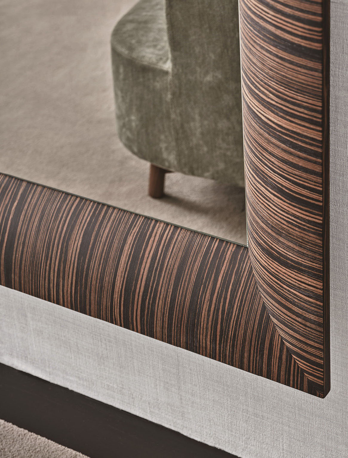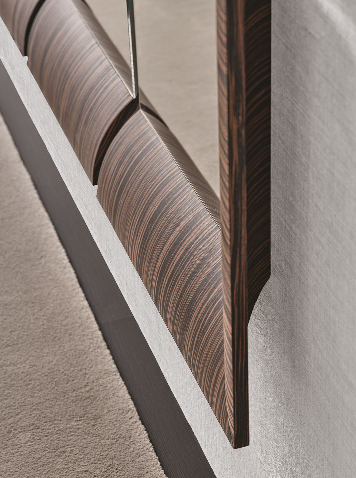 Зеркало Triple доступно в нескольких вариантах отделки, что позволяет подобрать идеальный вариант для любого интерьера. Натуральный орех Canaletta сохраняет естественную текстуру древесины, придавая изделию тепло и уют. Тонированные версии в цветах Moka и Wengé добавляют глубину и насыщенность, делая зеркало стильным акцентом в любом помещении.