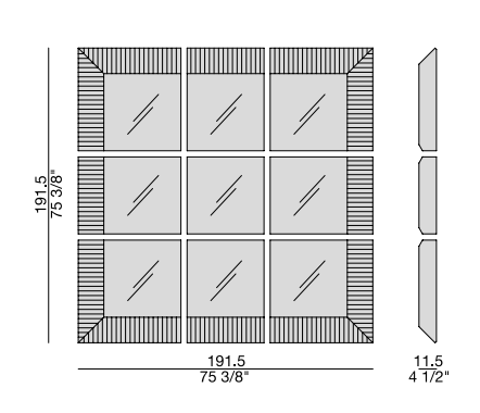 Зеркало Triple отличается оригинальной геометрией. Его внешний вид разделён на квадратные секции, что придаёт конструкции динамичность и визуальную глубину. Каждая из секций может быть настроена индивидуально. Это позволяет создавать уникальные композиции в зависимости от потребностей. Модульность обеспечивает гибкость в дизайне. Вы можете увеличивать или уменьшать количество секций, менять их расположение и форму. Таким образом, создаются персонализированные решения для любого интерьера.