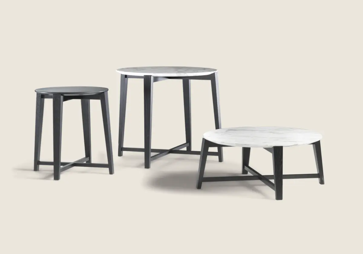 Серия столиков Tris воплощает элегантность, функциональность и разнообразие. Их лаконичные формы и изысканный дизайн идеально подходят для любого интерьера. Столики изготовлены из высококачественных материалов, таких как массив ореха каналетто, ясень, тик, венге или дуб. Эти материалы могут быть отделаны как в виде необработанного дерева, так и в натуральных тонах, включая экстра-тон, коричневую и черную тонировку. Такая конструкция придает столикам прочность, долговечность и создает ощущение тепла и уюта.