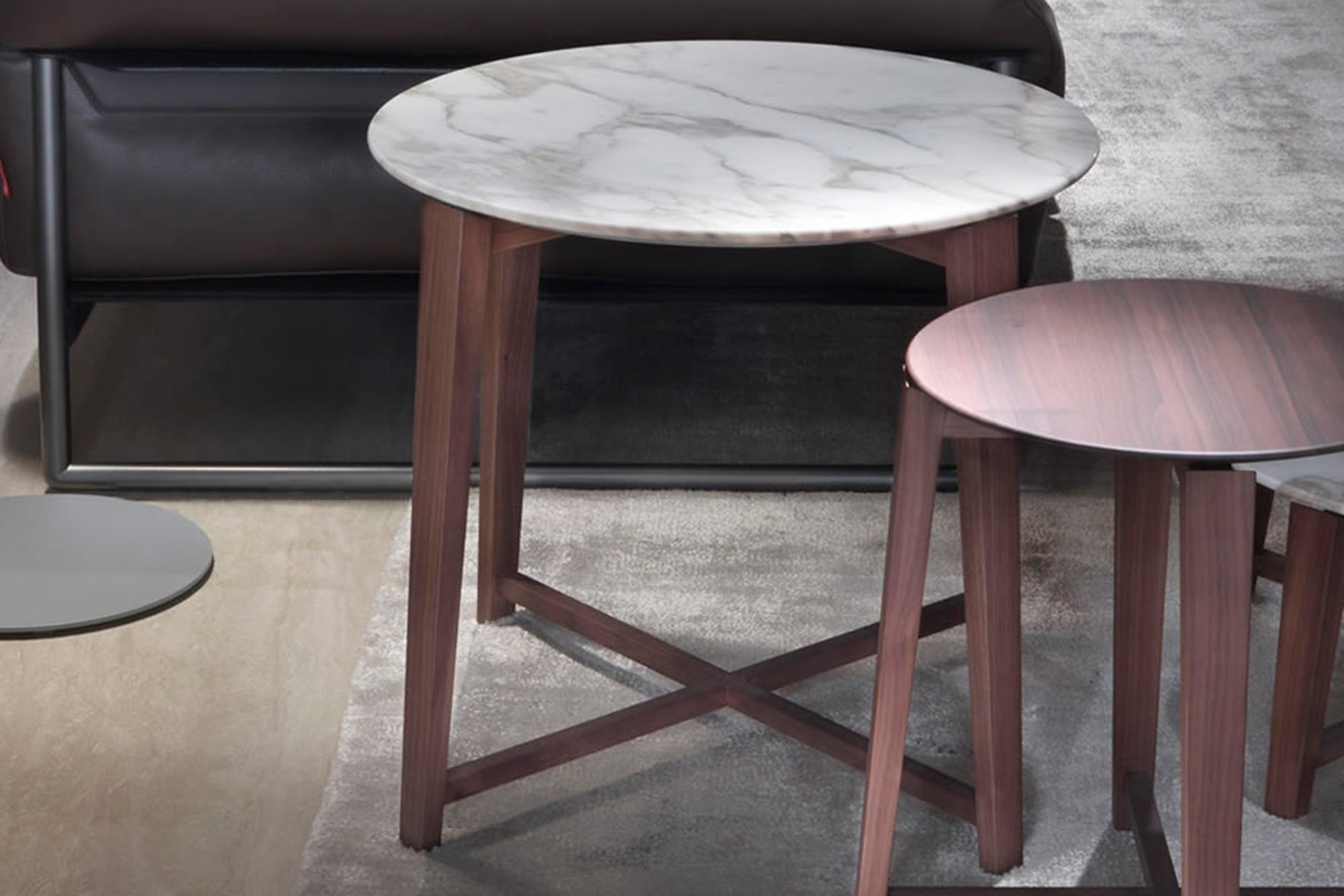 Столики Tris в четырех размерах, позволяют подобрать оптимальное решение для любого пространства. Они гармонично сочетаются с диванными группами коллекции Flexform, создавая целостный интерьер. Однако их универсальность позволяет использовать столики по отдельности или в группах, добавляя динамики в композицию. Это делает столики Tris идеальным выбором для любого интерьера, будь то гостиная, спальня, офис или другое помещение.