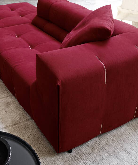 Дизайн диванов вдохновлён стилем капитоне, популярным в 1960–1970-х годах. Эта особенность придаёт диванам особый шарм и элегантность. Швы чехлов могут быть в том же цвете, что и основной материал, или создавать контрастные акценты, добавляя модели глубину и интерес.