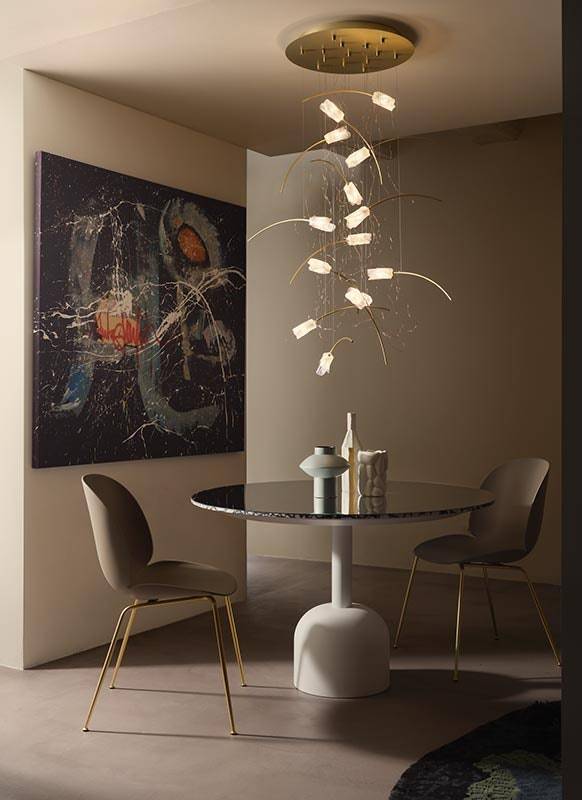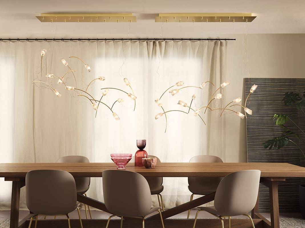 Коллекция Tulip Suspension предлагает несколько вариантов конфигурации. Это позволяет выбрать светильник, который идеально впишется в интерьер. Среди доступных решений — готовые комплекты из 7 или 14 цветов. Они подвешены на одной матовой латунной прямоугольной или круглой потолочной розетке. Также можно приобрести отдельно стоящие пучки из 14 цветов. Это даёт больше свободы для творчества. Это позволяет адаптировать светильник под конкретные условия пространства.