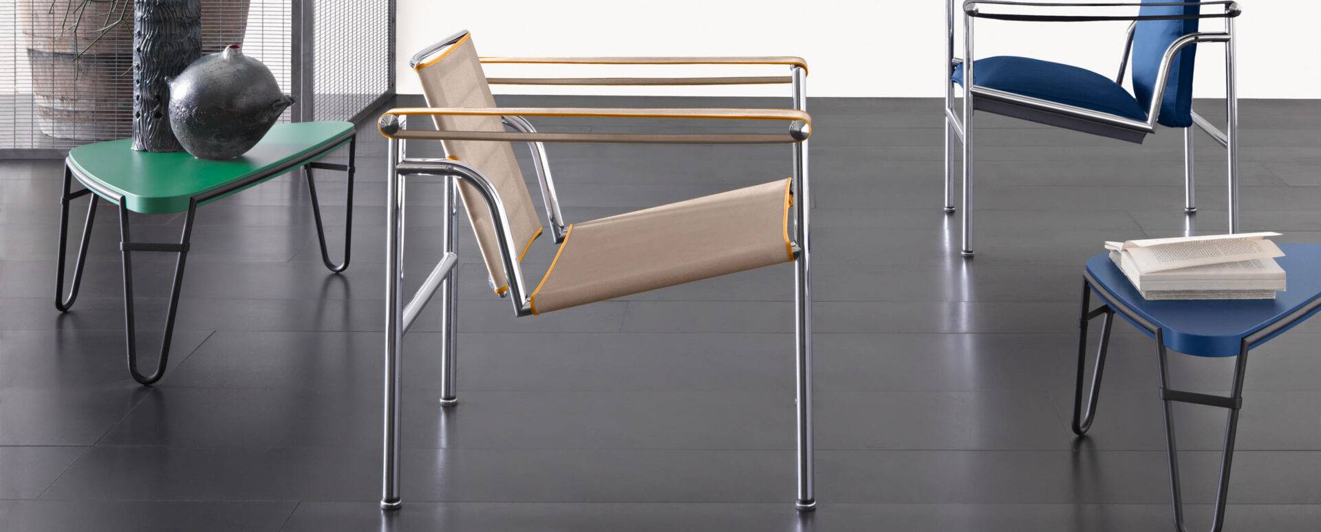 Семейство кресел LC1 было разработано в 1928 году для церкви, которая находится в городе Виль-д’Авре (Ville-d'Avray). Эта версия LC1 под названием UAM была представлена в 1930 году на первой выставке союза современных художников, а в 2011 году доработана современными дизайнерами. Основание сделано из трехвалентной хромированной стали, а обивка из натуральной кожи. Это кресло было разработано почти сто лет назад, но до сих пор является прекрасным решением для современного интерьера. На сайте представлен один вариант материала обивки. Для подробной информации о доступных цветах и материалах обивки свяжитесь с нами, и мы Вам обязательно поможем.n