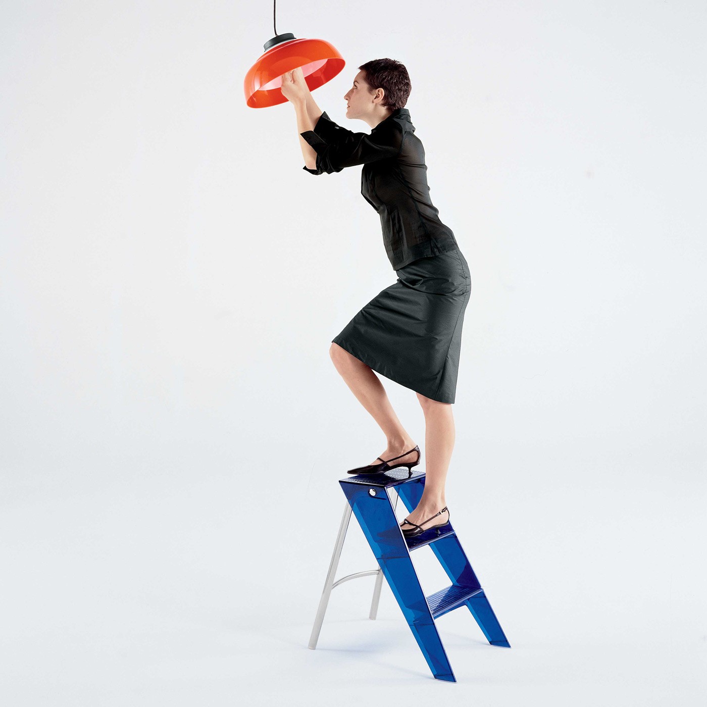 Уникальная форма стремянки Upper позволит Вам ощутить абсолютную защищенность от соскальзывания. Этот предмет - удачный союз яркого дизайна и практичности. Практические качества изделия обусловлены использованием технологий Kartell, которые позволили сформировать поликарбонат, придав ему устойчивость, крепость и прочность - свойства, необходимые для стремянки.