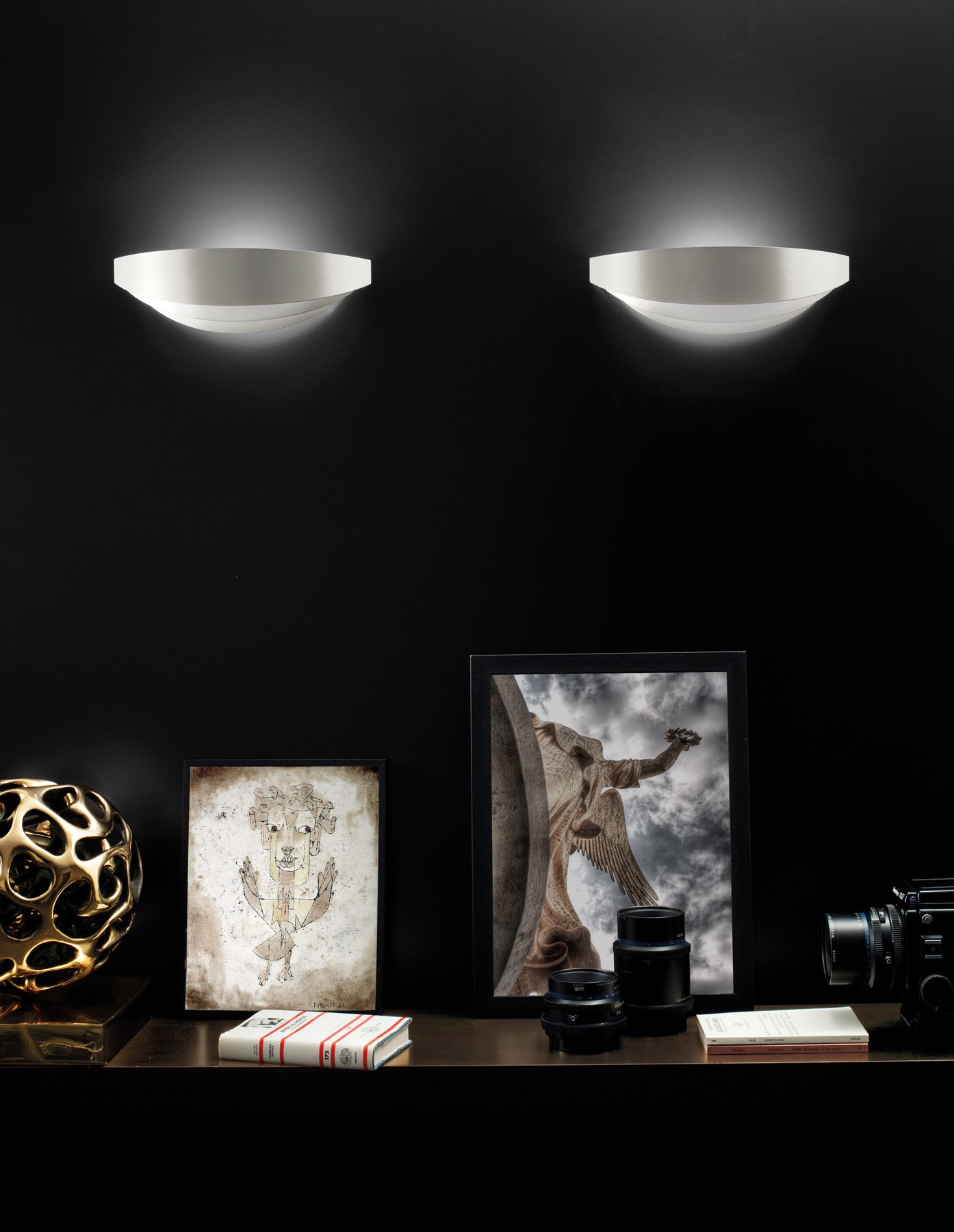 Uriel - это коллекция настенных светильников, которая, несмотря на свою простоту, впечатляет светом, мягко разливающемся по стене и по всему помещению, не раздражая глаз. Неслучайно форма светильников напоминает веки, часть глаза, защищающую его от ослепления. Именно эта особенность является основной характеристикой Uriel: три металлические пластины, из которых состоит светильник, отражают и направляют свет, распространяя его так, чтобы не ослеплять наблюдателя, также как архангел, именем которого названа коллекция, расправляет крылья, чтобы модулировать свет и нежно распространять его в пространстве. Согласно еврейской традиции Uriel - это ангел, который руководит движением солнца, его имя означает "свет Бога"; кроме того, в западной традиции ангелы отражают и делают видимым свет, излучаемый Богом, который из-за своей чистоты оставался бы недостижимым для человека. Светильник Uriel предлагается в трех цветах, соответствующих трем различным эстетическим и стилистическим подходам: жемчужно-белый, элегантный и шелковистый; бронзовый, теплый и успокаивающий; хром, богатый и блестящий.