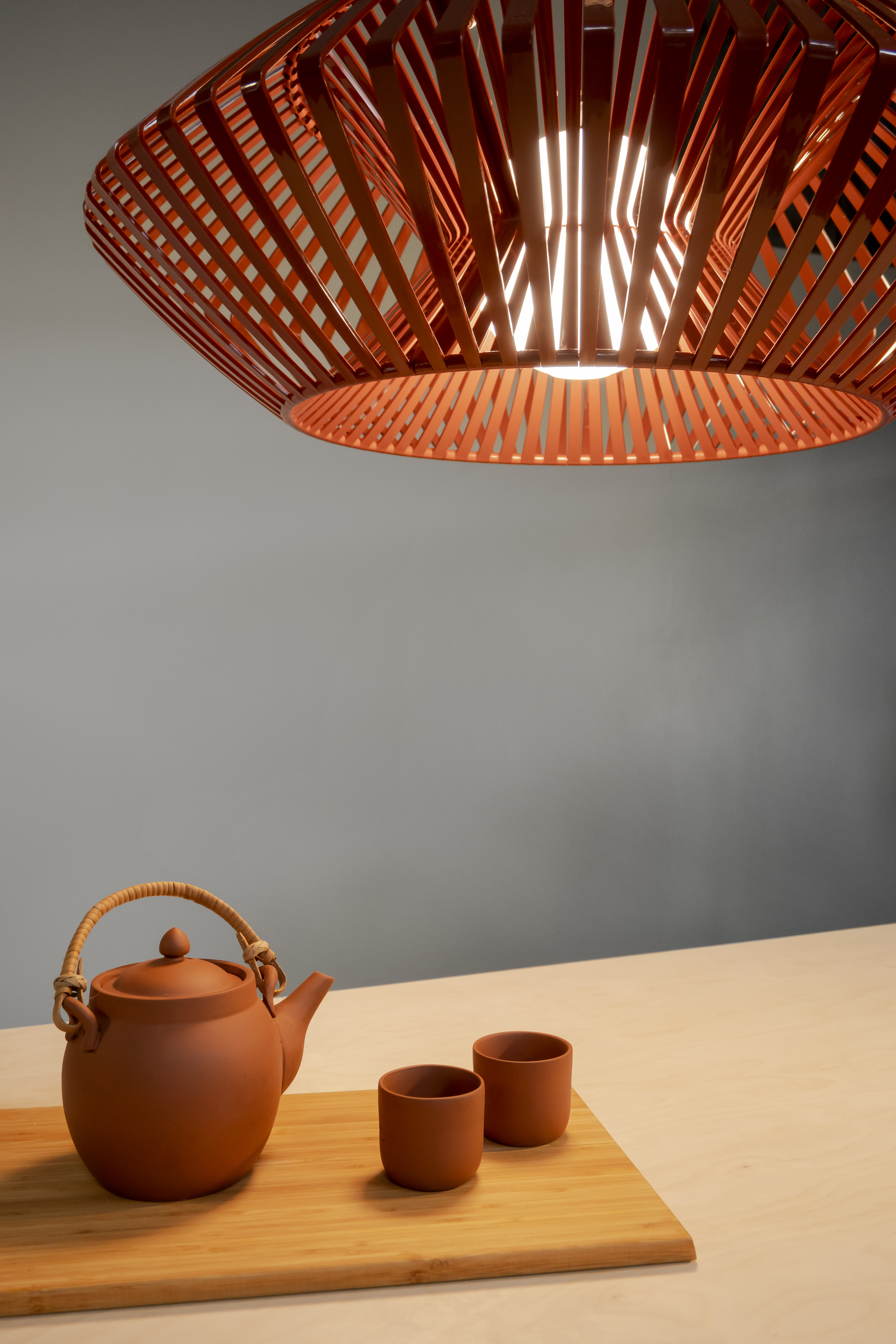 V grande — это подвесной светильник ручной работы, который предоставляет возможность в полной мере настроить цвет освещения. Он доступен в двух размерах: с диаметром 80 см и 105 см, что позволяет подобрать оптимальный вариант для любого интерьера.