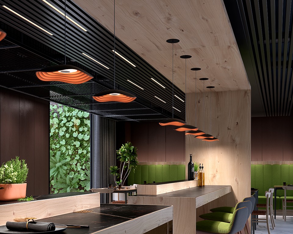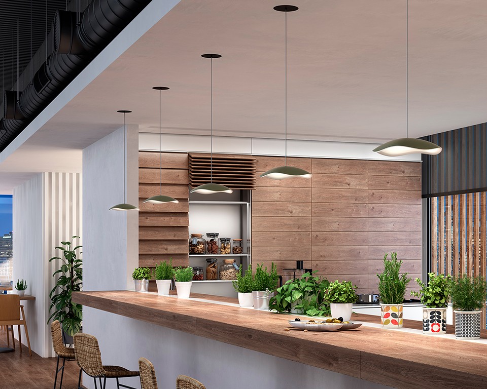Свет проходит через тонкий поликарбонатный рассеиватель. Благодаря этому он приобретает особую мягкость. Пространство наполняется тёплым и в то же время направленным свечением. Это не просто освещение, а своеобразная световая скульптура. Она способна преобразить интерьер, придав ему средиземноморское очарование.