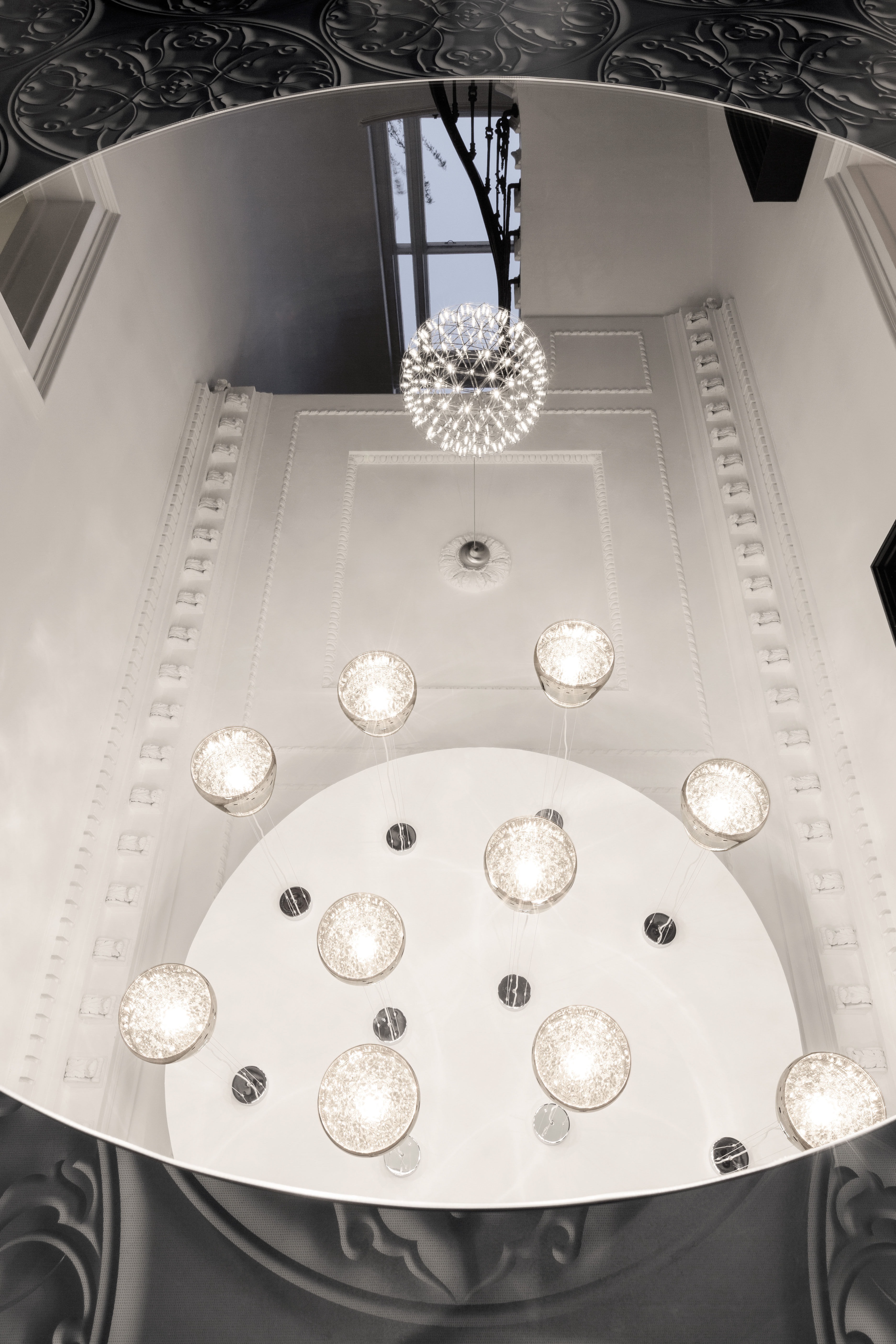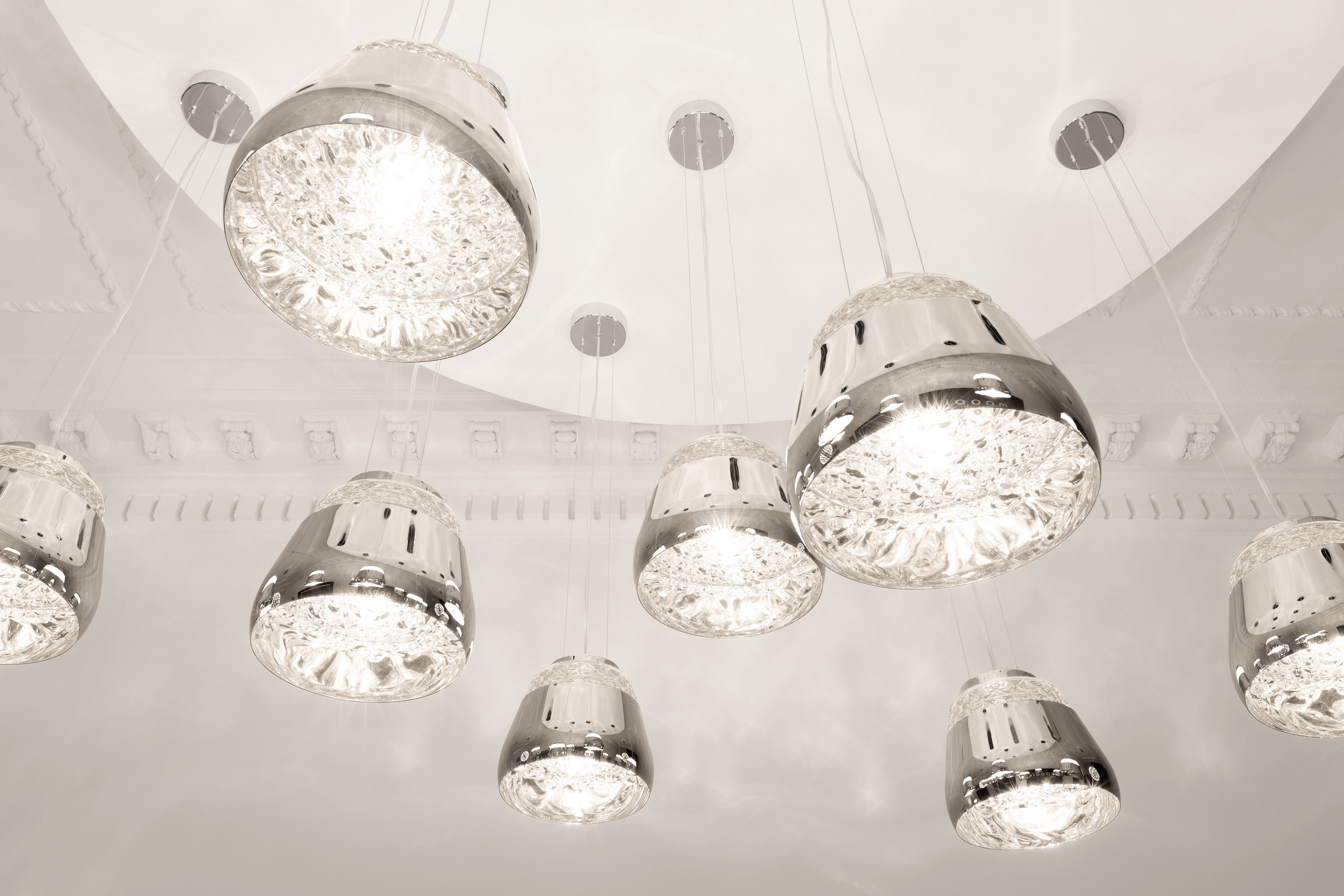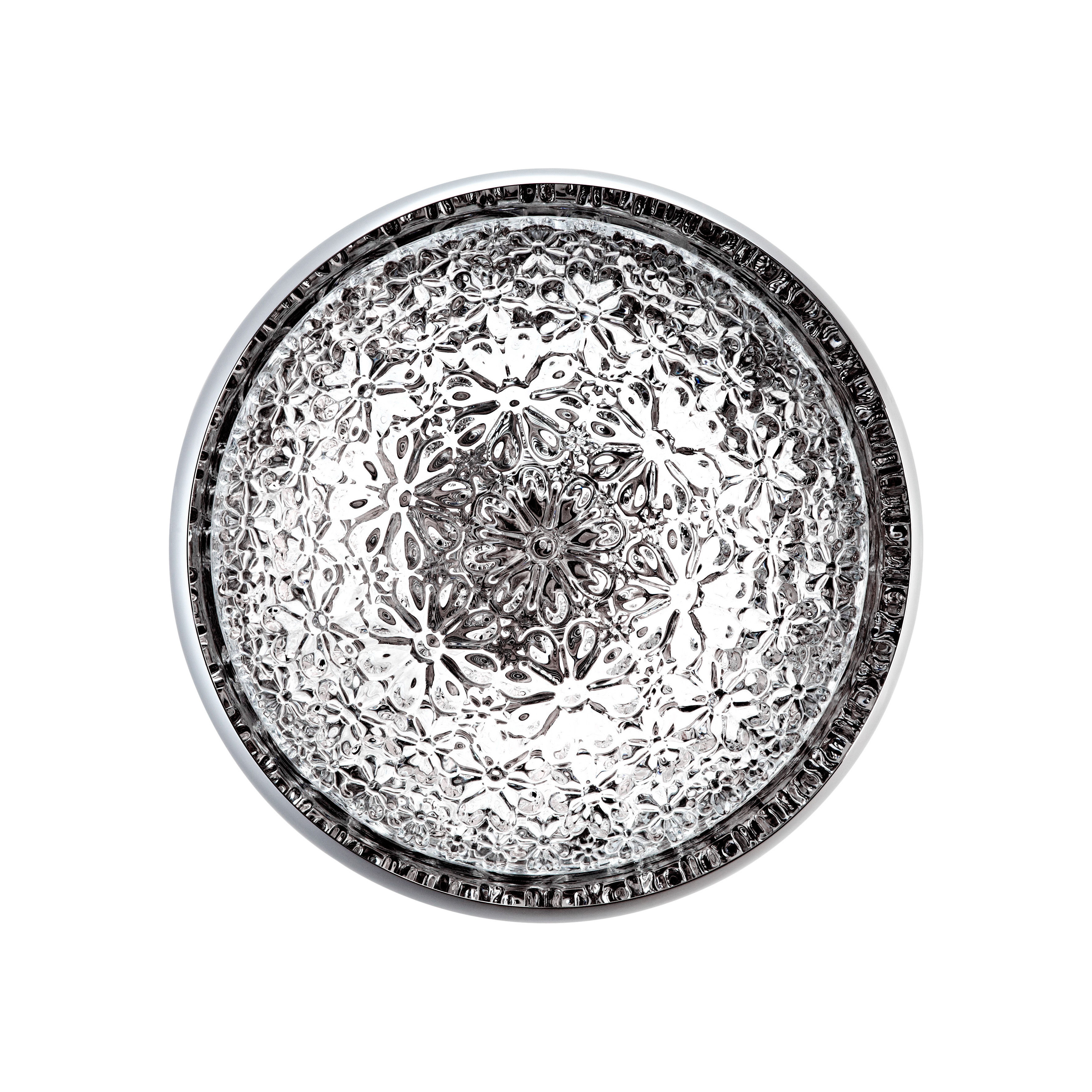 Потрясающий, стильный светильник VALENTINE завораживает своим дизайном и необычными световыми бликами. Плафон изготовлен из прозрачного выдувного стекла. Часть поверхности выполнена с напылением из хрома / золота / лакирована в черный или белый цвет (внутри плафон в цвете хрома). Внутренняя сторона декорирована цветочным узором. Лампа: 1 x E14, MAX 60W.