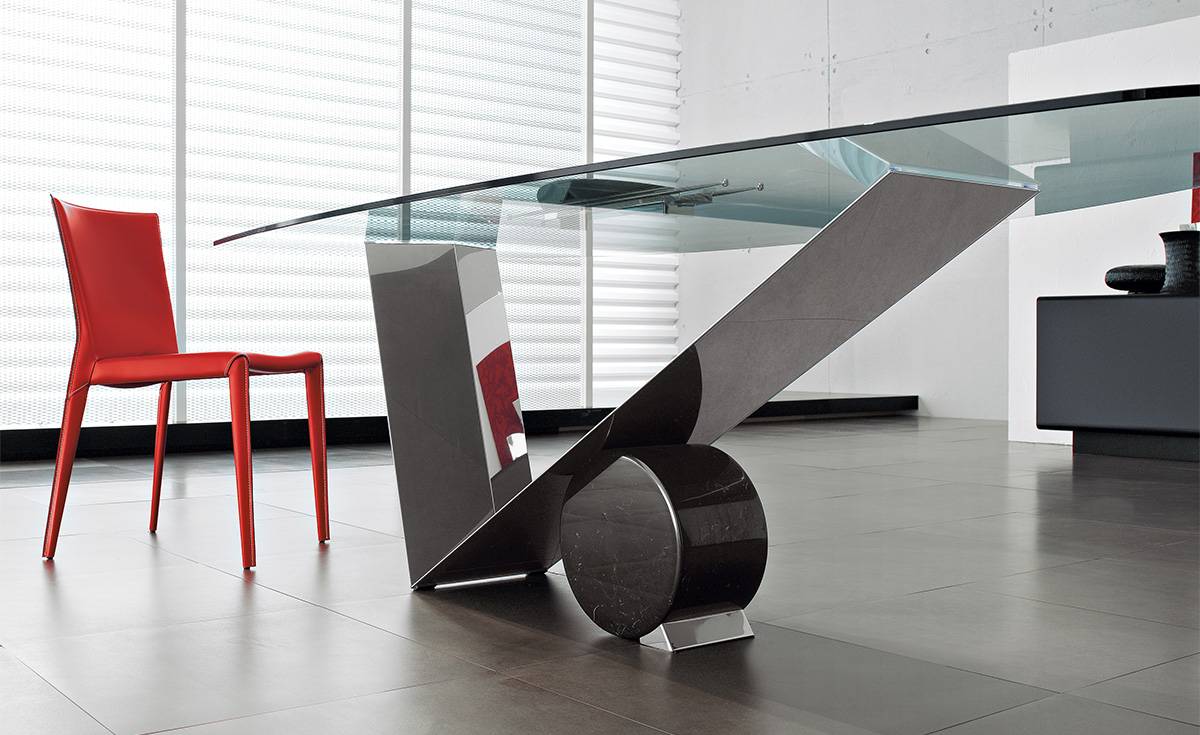 Скульптурное основание VALENTINOX демонстрирует идеальный баланс объемов, где элементы визуально поддерживают друг друга, а стеклянная столешница подчеркивает сочетание материалов, добавляя композиции легкость и выразительность. Стол воплощает идею гармоничного противоречия — массивное основание кажется невесомым, а прозрачная столешница обретает монументальность. Коллекция Valentino остается эталоном современного дизайна, объединяя художественное видение и функциональность. Идеальное решение для интерьеров, где важны скульптурность и внимание к деталям.