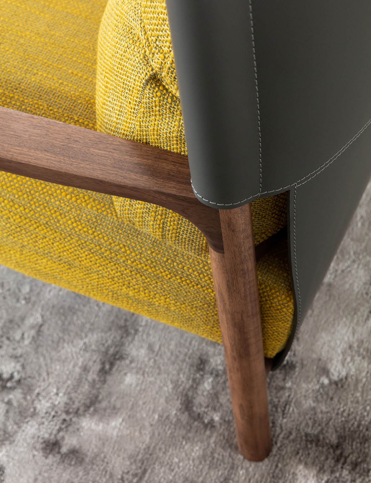 Основу модели составляет массивный каркас из ореха Canaletta. Этот выбор материала подчёркивает премиальность и долговечность кресла. Орех Canaletta — это не просто древесина, а свидетельство мастерства и внимания к деталям. Ручная обработка и элегантное исполнение каркаса создают ощущение эксклюзивности и высокого качества.