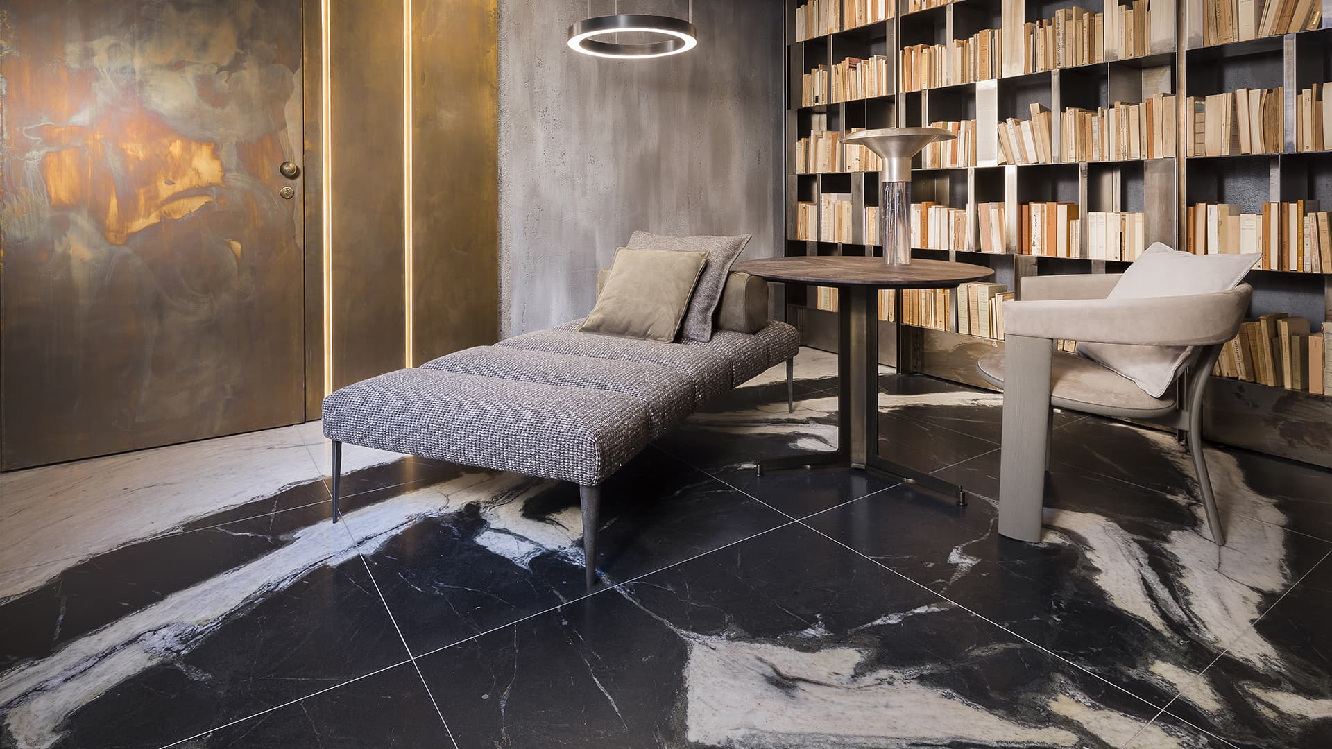 Основание банкетки — это отдельное произведение искусства. Ножка выполнена из натурального песчаника. Её можно дополнить вставками из латуни, бронзы или серебра. Это добавляет интерьеру тактильную глубину и игру текстур.