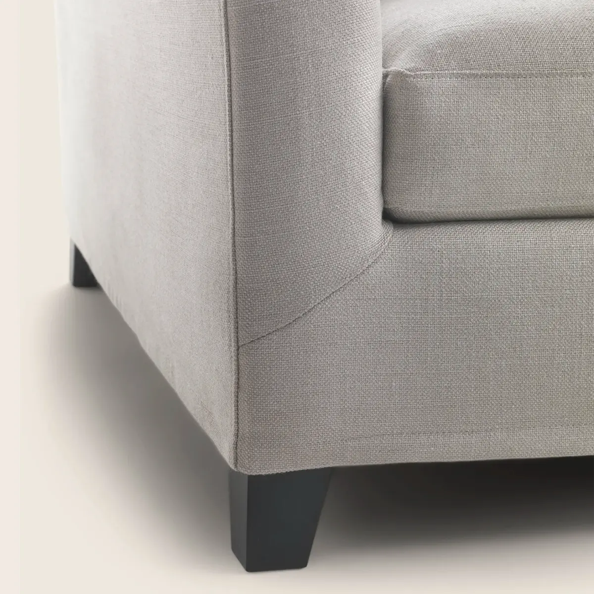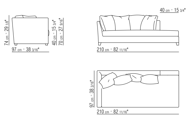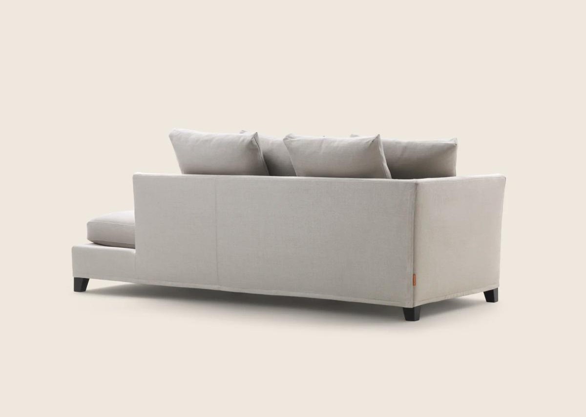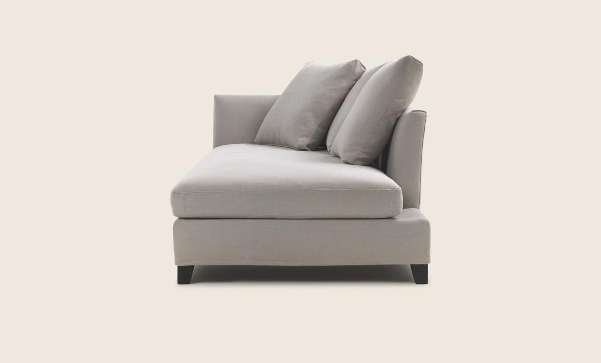 Спинка и подлокотник кушетки имеют одинаковую высоту, что придаёт ей гармоничный и сбалансированный вид. Цельная подушка сиденья щедро наполненная полиуретаном и дакроном, обеспечивает дополнительный комфорт и мягкость.