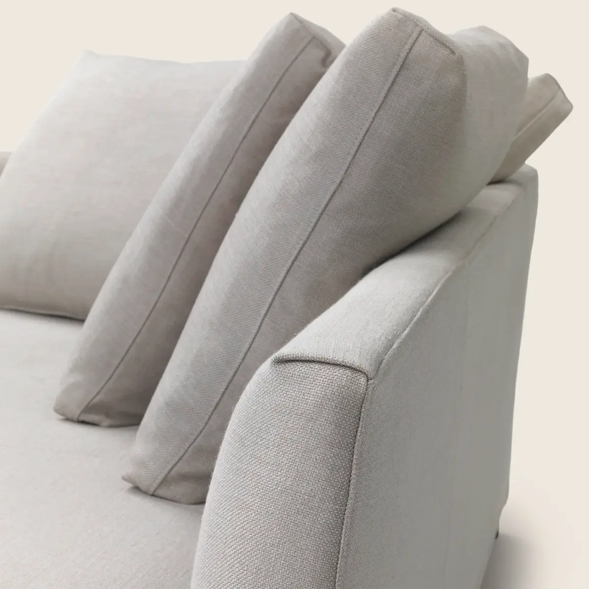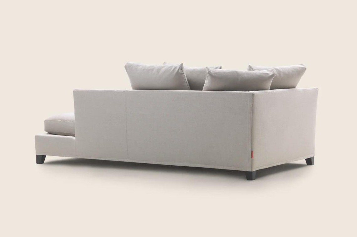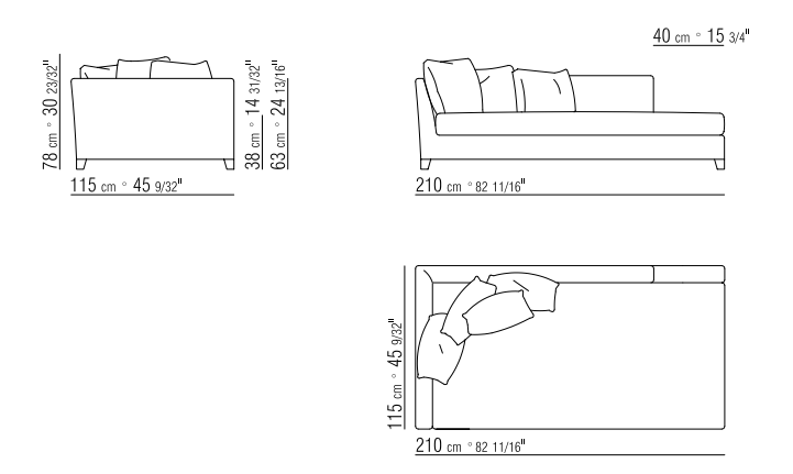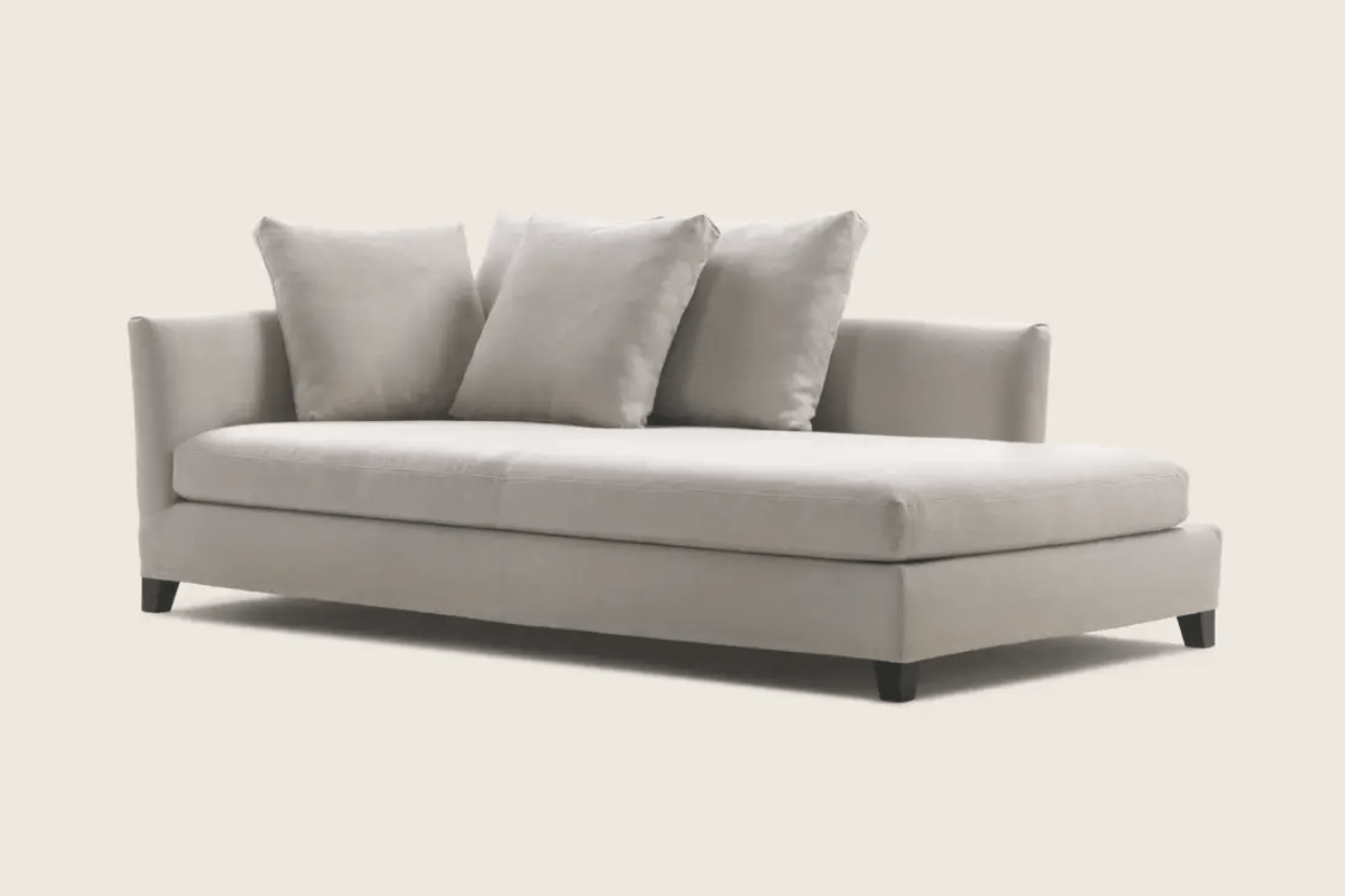 Спинка и подлокотник кушетки имеют одинаковую высоту, что придаёт ей гармоничный и сбалансированный вид. Цельная подушка сиденья щедро наполнена полиуретаном и дакроном. Это обеспечивает оптимальную поддержку и комфорт во время отдыха.