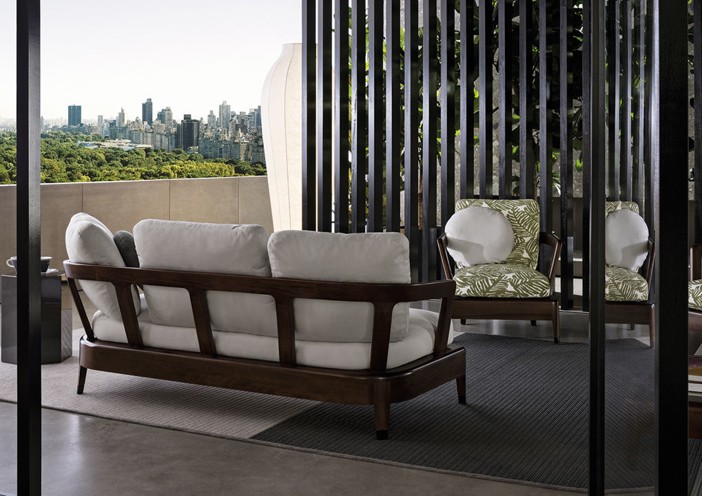 Коллекция Virginia Outdoor включает в себя уличную мебель. Каркас дивана Virginia Outdoor изготавливается из прочного дерева и покрывается лаком. Сиденье и спинка наполнены пенополиуретаном, который отличается упругостью. В качестве обивки применяется ткань либо кожа. Доступно несколько вариантов цвета обивки. Диван Virginia Outdoor может быть дополнен мягкими круглыми подушками и пуфом для ног. Модель можно использовать на улице, благодаря использованию специальных влагостойких материалов.