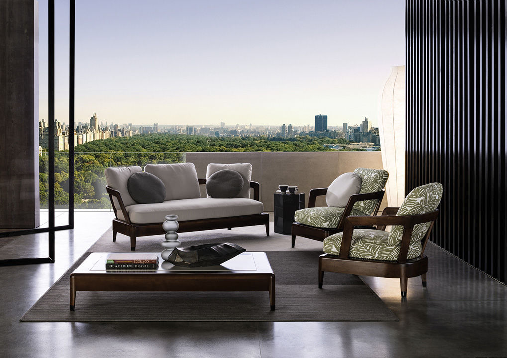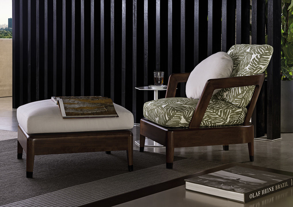 Коллекция Virginia Outdoor включает в себя уличную мебель. Каркас кресла Virginia Outdoor изготавливается из прочного дерева и покрывается лаком. Сиденье и спинка наполнены пенополиуретаном, который отличается упругостью. В качестве обивки применяется ткань либо кожа. Доступно несколько вариантов цвета обивки. Кресло Virginia Outdoor может быть дополнено мягкими круглыми подушками и пуфом для ног. Модель можно использовать на улице, благодаря использованию специальных влагостойких материалов.