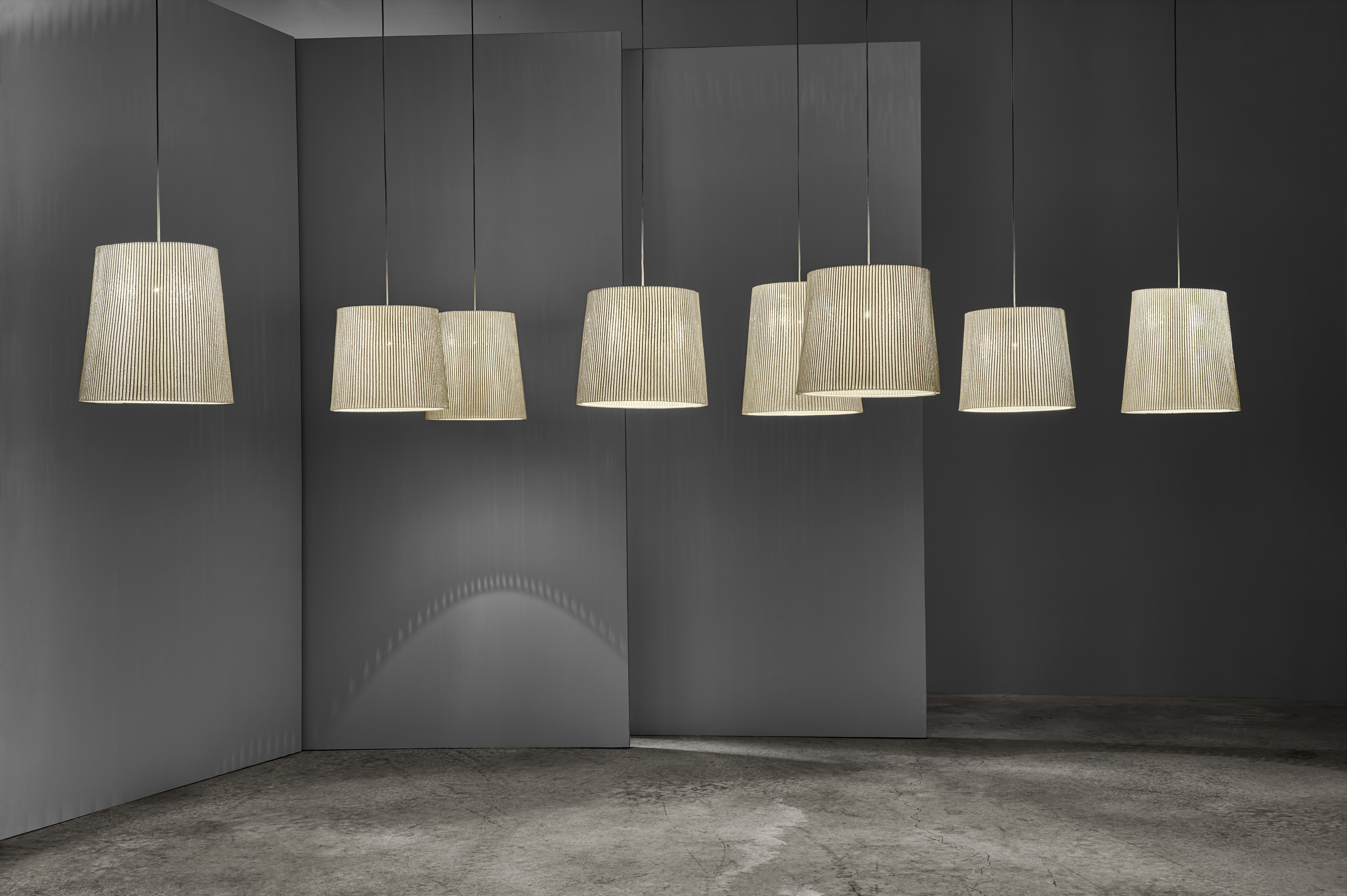 Virginia pendant предлагается в нескольких цветовых решениях: белом, бежевом, сером, серо-коричневом. Также доступен индивидуальный цвет, что позволяет подобрать светильник под любой интерьер. Длина подвеса составляет 150 см, что обеспечивает гибкость при установке и возможность адаптировать светильник под различные дизайнерские решения.