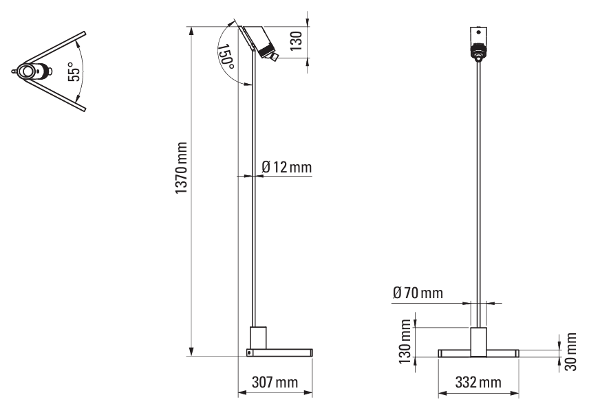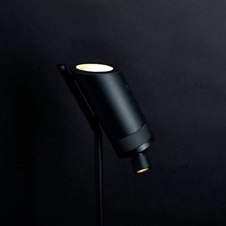 Торшер имеет два источника света. На корпусе расположено кольцо Dimm-Ring, которое позволяет регулировать интенсивность светового луча, исходящего из нижней точки. Направление луча можно менять при повороте шарнира, что обеспечивает гибкость освещения в зависимости от потребностей.