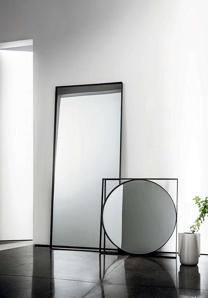 Рама настенного зеркала Visual выполняется из алюминия и покрывается лаком в коричневом или латунном цвете. Зеркало доступно в пяти вариантах цвета: бронзовый, дымчатый, прозрачный, золотой или розовый. Серия Visual включает в себя зеркала нескольких размеров и форм. Детали о данной модели уточняйте у менеджеров или в PDF инструкции.