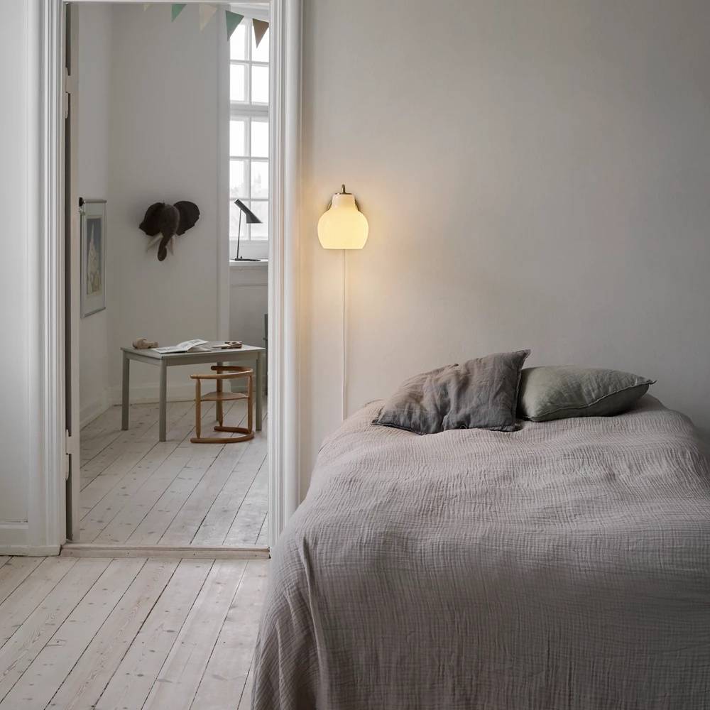 Светильник VL Ring Crown Wall 1 — это настенная версия, конструкция состоит из одного или двух плафонов, выполненных из трёхслойного, ручной выдувки опалового стекла, которое мягко рассеивает свет, создавая тёплый и равномерный световой ореол. Корпус изготовлен из полированной латуни без покрытия — материал со временем приобретает уникальный патинированный оттенок, подчёркивающий индивидуальность каждого экземпляра. Свет направлен вниз и в стороны, формируя комфортную зону освещения у стены. Это делает светильник идеальным для прихожих, гостиных, спален или ресторанов, где важны и атмосфера, и архитектурная выразительность.