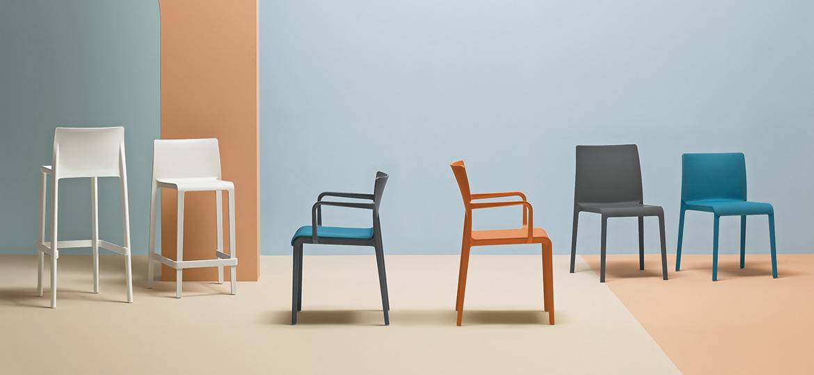В коллекцию Volt входят барные и обеденные стулья с подлокотниками или без и с различной отделкой. Стул Volt полностью изготавливается из полипропилена в различной цветовой гамме. Также доступна модель стула с мягким сиденьем и спинкой или только с сиденьем в обивке из ткани или кожи. Модель без обивки можно использовать на улице, благодаря использованию специальных влагостойких материалов. Детали уточняйте у менеджеров или в PDF инструкции.