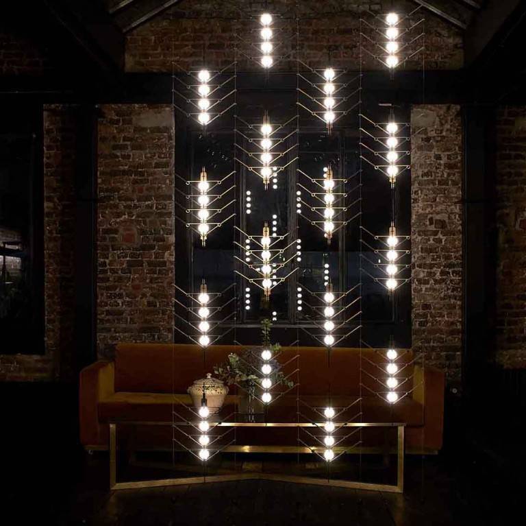 VVV Modules собирается из двусторонних модулей, крепящихся к тонким тросам, которые работают от низковольтного напряжения. Такая конструкция делает светильник безопасным и позволяет использовать его в различных помещениях.