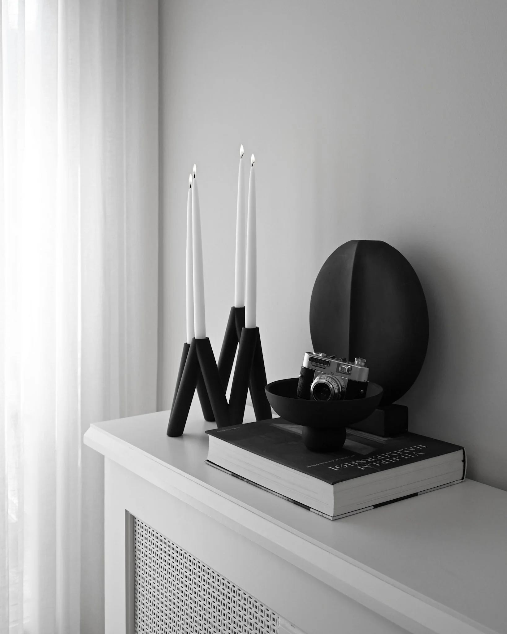 Подсвечник W Candle Holder — это скульптурное воплощение бруталистской архитектуры, где мощь и геометрическая выразительность сливаются в динамичной композиции. Вдохновлённый эстетикой брутализма с его честными формами и монументальностью, этот подсвечник завораживает игрой наклонных колонн, пересекающихся под острыми углами.