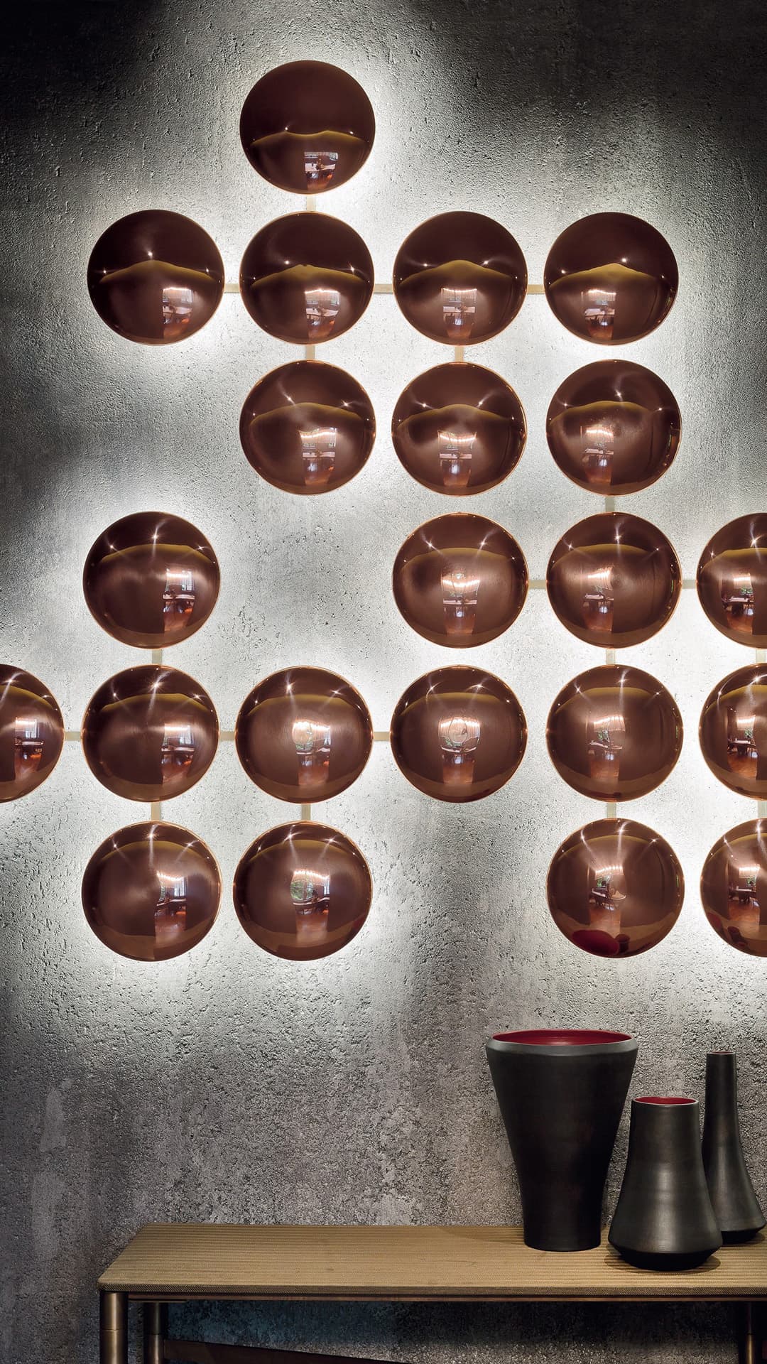 Особенность бра Henge Wall Clips заключается в его способности мягко рассеивать свет благодаря круглой форме элементов. Этот свет создаёт уютную и приглушённую атмосферу, наполняя пространство теплом и уютом. Такое освещение не только обеспечивает комфорт, но и добавляет интерьеру глубины и характера, делая его более живым и насыщенным.