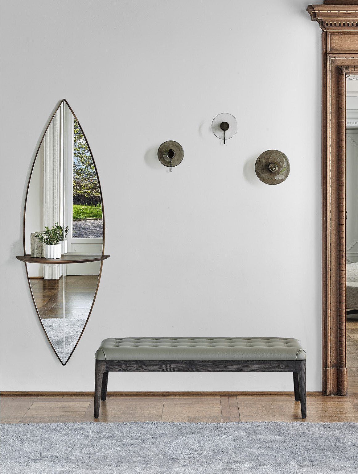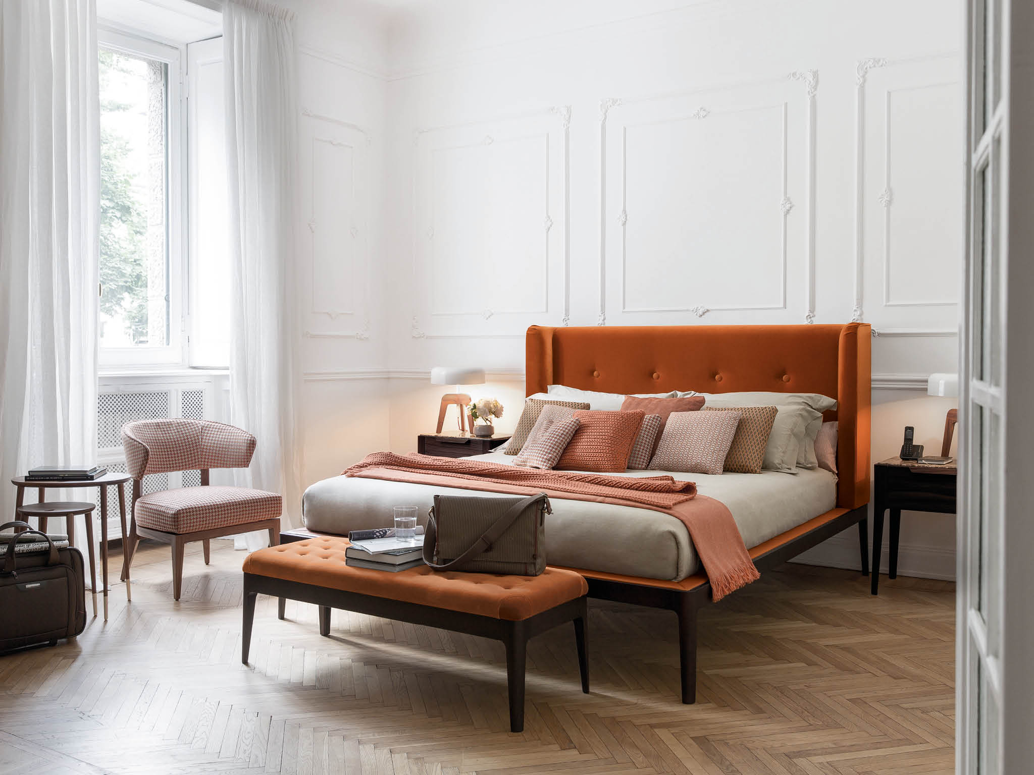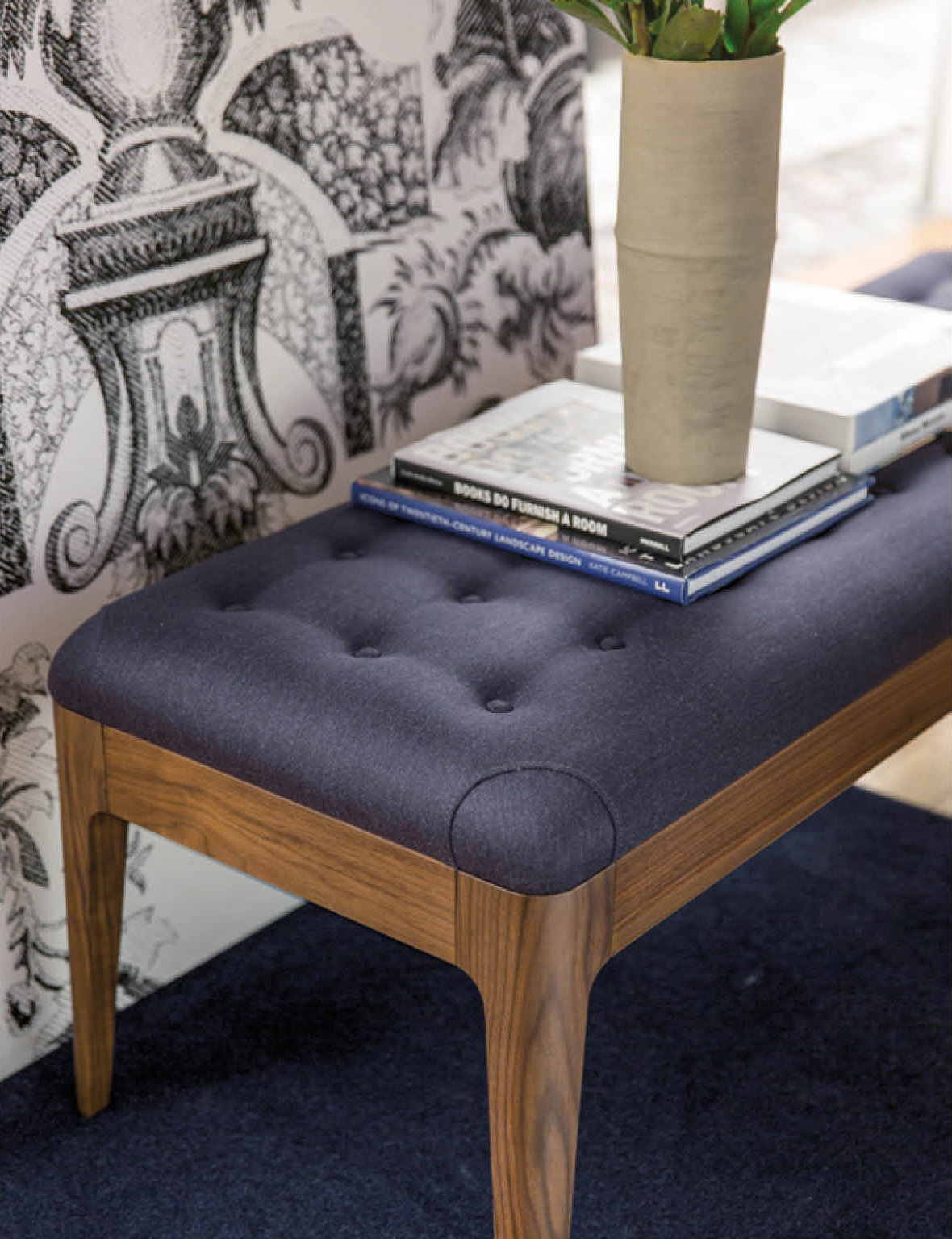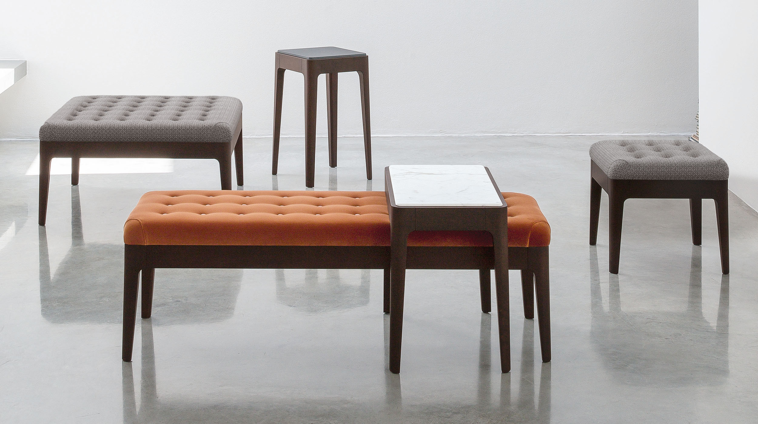 Коллекция Webby представляет собой утончённое трио предметов мебели, способных преобразить любую современную гостиную, придав ей элегантность и изысканность. Эта коллекция включает в себя скамьи, кухонные табуреты и подставки для ног. Все изделия выполнены из высококачественного орехового массива Canaletta либо ясеня, что обеспечивает их долговечность и природную красоту. Коллекция Webby предоставляет широкие возможности для персонализации. Можно выбрать пуговицы, которые будут гармонировать с цветом сиденья или создавать контрастные акценты. Webby 1 — это скамья с каркасом из орехового массива Canaletta или ясеня и сиденьем с отделкой capitonné в тканях коллекции. Заказ пуговиц в тон или контрастных цветов позволяет подчеркнуть индивидуальность и стиль интерьера.