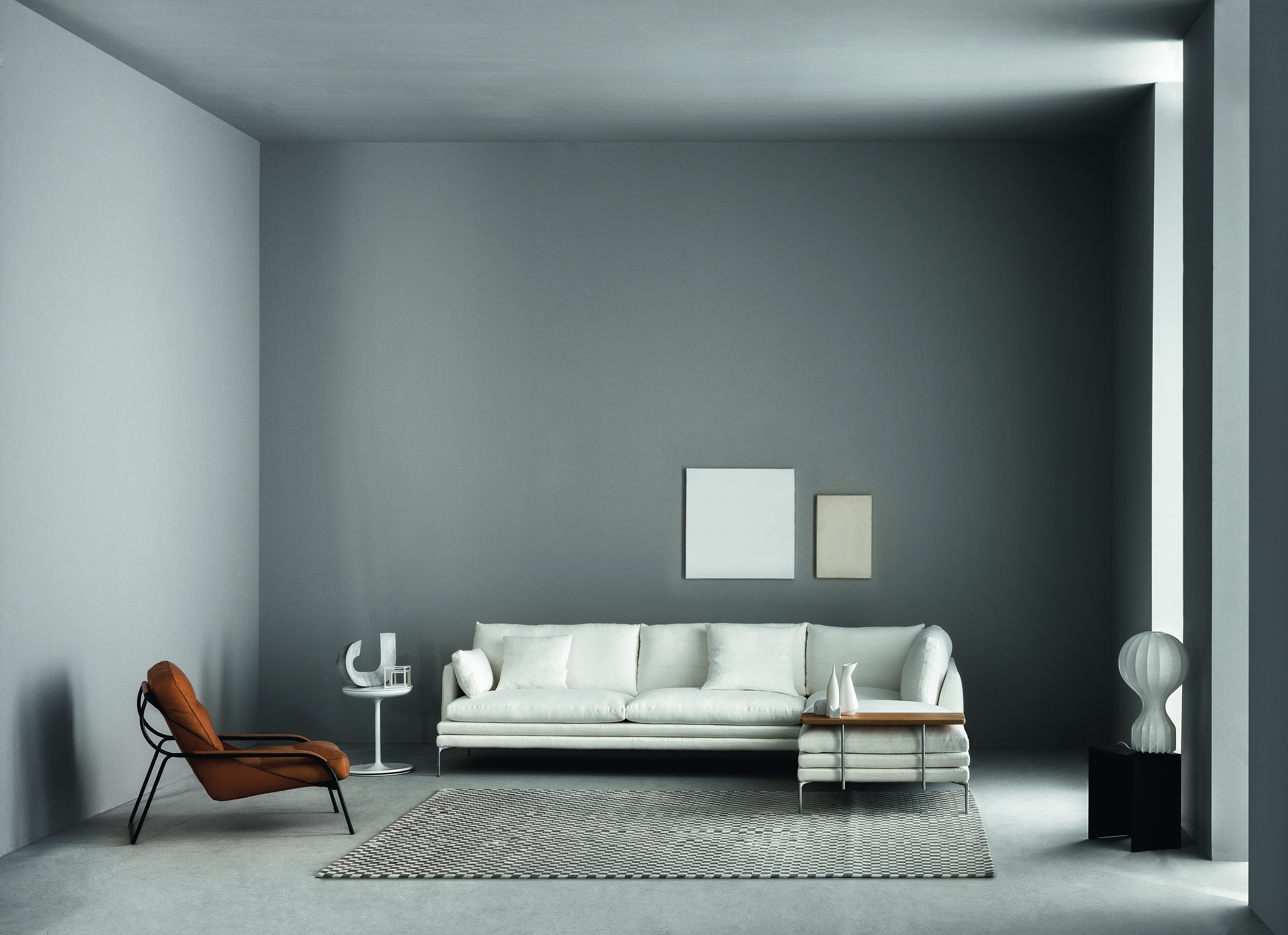 Модульный дизайнерский диван William фабрики Zanotta. Каркас дивана сделан из стали. Основание перетянуто упругими ремнями. Подушки сидения наполнены гусиным пухом - 100% чистый материал. Подушки спинки наполнены полиуретаном. Чехлы как в коже, так и в ткани полностью съемные. С диваном можно приобрести удобную полочку из твердой древесины и с каркасом из стали. Есть возможность собрать собственную композицию. Детали уточняйте у менеджеров или в PDF.