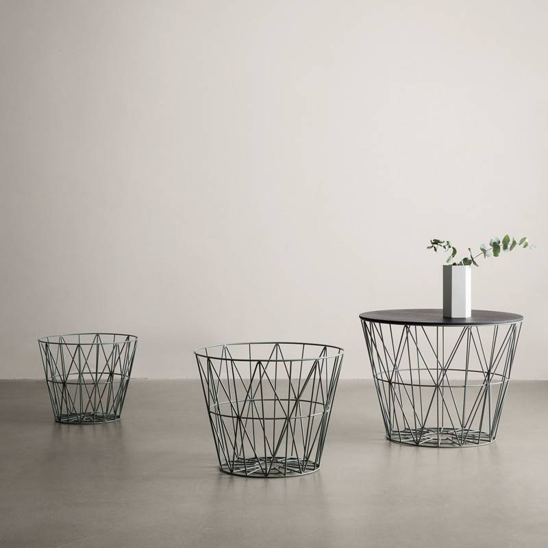 Стальная проволока в корзине Wire Basket Korb создает многофункциональную воздушную емкость. Датский стиль прослеживается в геометрическом плетении, а порошковое напыление материала напоминает морозный рисунок на окне. В ней удобно хранить игрушки в детской, полотенца – в ванной комнате. Отдельно можно приобрести деревянную крышку, которая позволяет использовать корзину как столик. Модель весьма востребована в эффектной гостиной, у камина, наполненная смолистыми дровами.