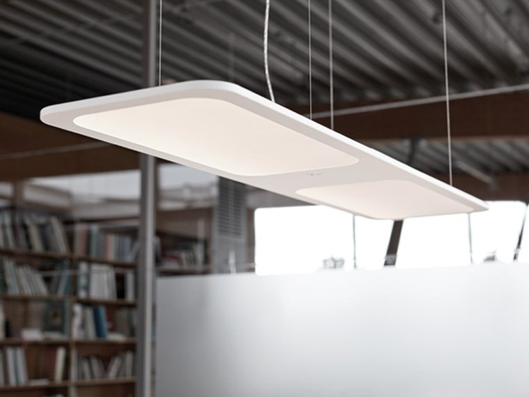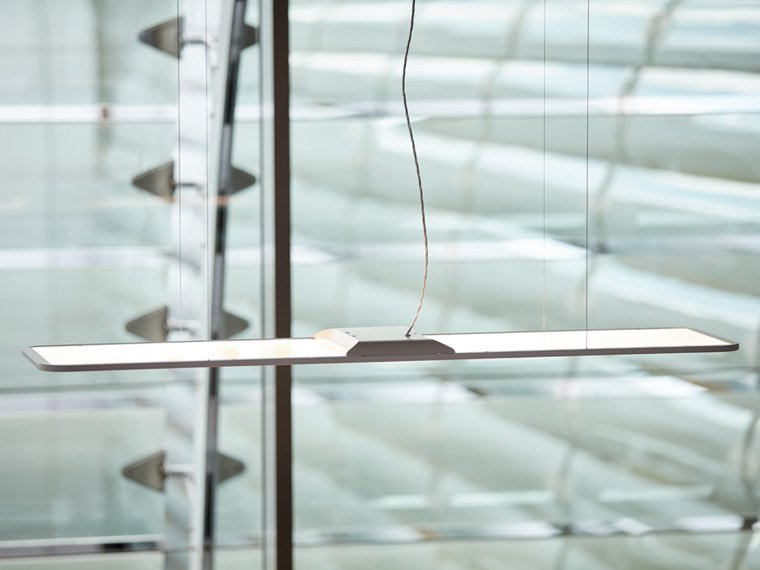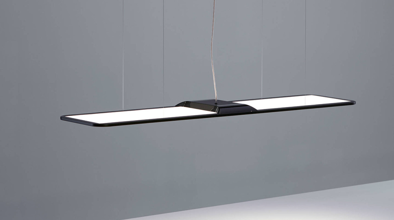 Светильник создаёт комфортное освещение благодаря двум ультраплоским световым панелям толщиной всего 12 мм. Лазерная оптимизация распределения света по 8 слоям обеспечивает равномерное, мягкое свечение без бликов. Общая яркость достигает 10 970 люмен, а цветовая температура регулируется в диапазоне от 2700 К (тёплый свет) до 6000 К (холодный свет). При этом 45% света направляется на рабочую поверхность, а 55% — на окружающее пространство.