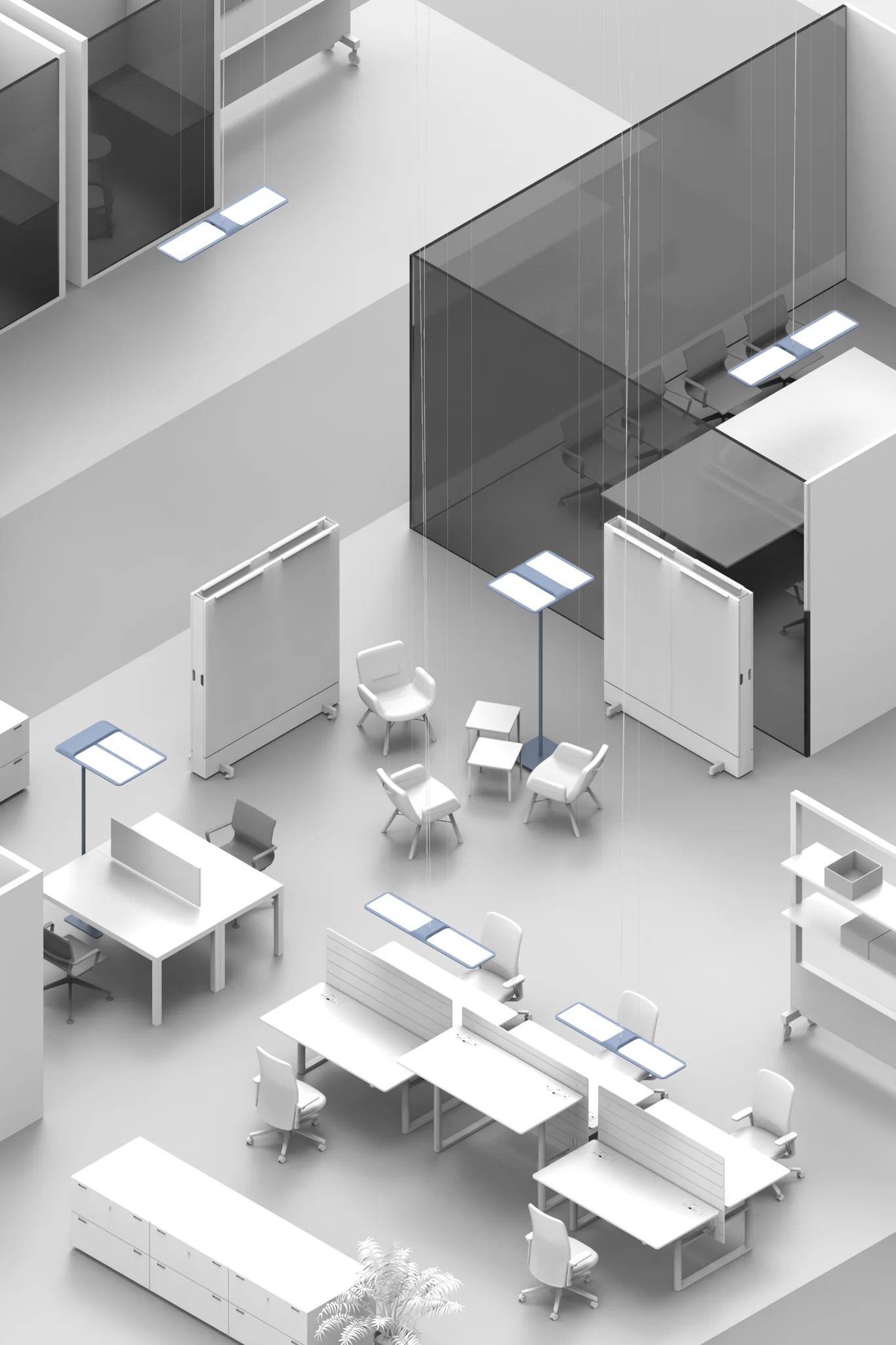 Длина подвеса составляет 2 м. Светильник идеально подходит для конференц‑залов, фойе и офисных пространств, где важно сочетать функциональность с современным дизайном. Xt‑s не просто освещает помещение — он создаёт комфортную световую среду, снижая утомляемость и подчёркивая стиль интерьера.
