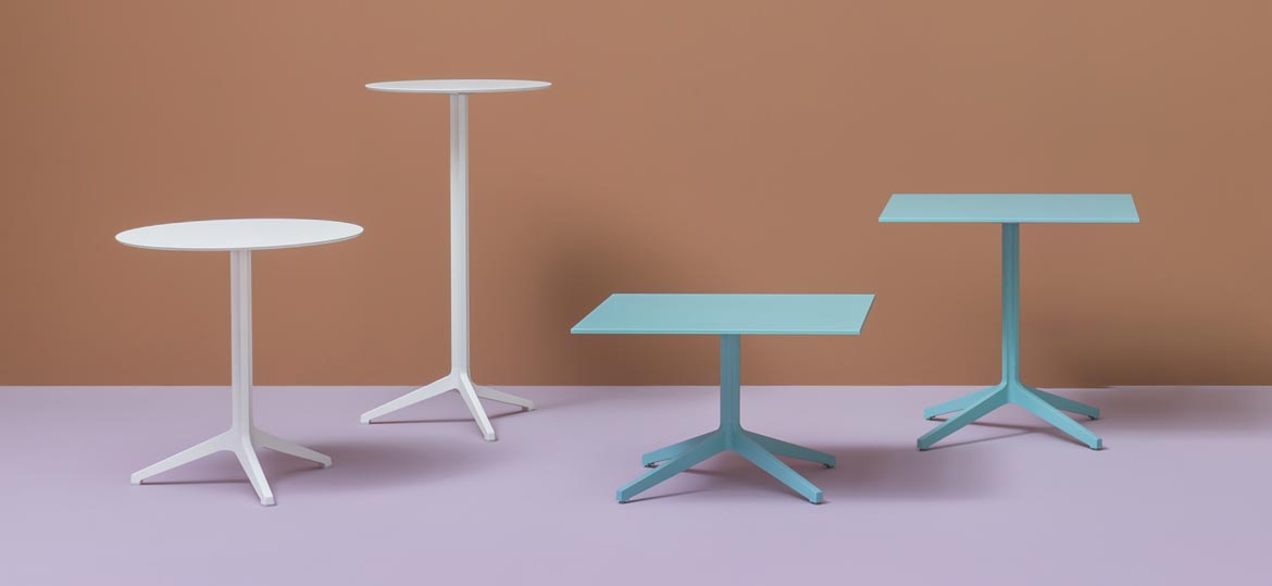 Коллекция Ypsilon включает в себя столы с круглой или квадратной столешницей различных размеров. Основание изготавливается из окрашенного, полированного или анодированного алюминия. Оно комбинируется со столешницами из стекла, пластика или стали. Детали уточняйте у менеджеров или в PDF инструкции.