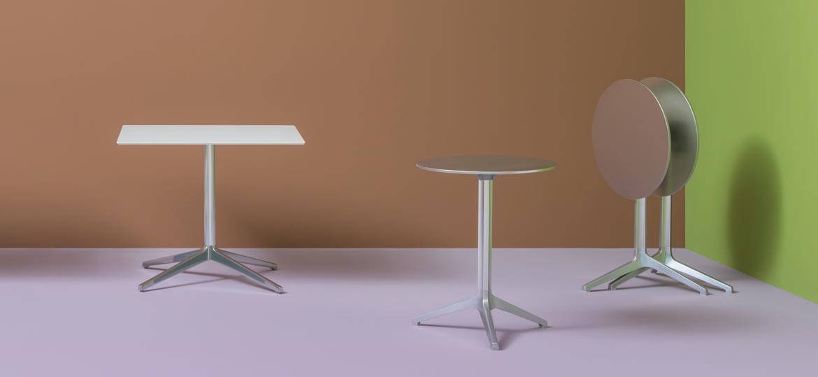 Коллекция Ypsilon включает в себя столы с круглой или квадратной столешницей различных размеров. Основание изготавливается из окрашенного, полированного или анодированного алюминия. Оно комбинируется со столешницами из стекла, пластика или стали. Детали уточняйте у менеджеров или в PDF инструкции.