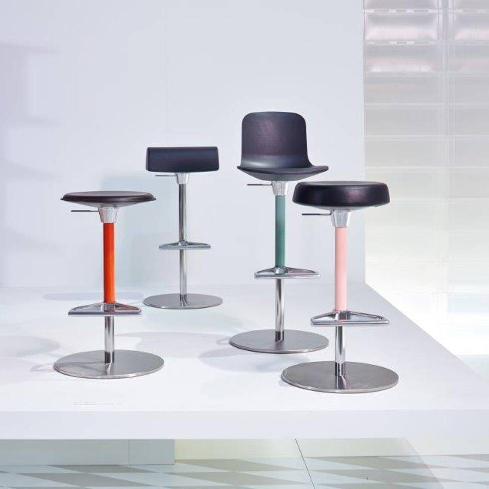 Барный стул Zeb производится с 2014 г. Каждый фрагмент стула сделан очень качественно: основа сидения и поворотный кронштейн изготовлены из литого под давлением алюминия, хромированная газовая пружина, опора для ног и основание точно согласованы, вплоть до мельчайших деталей. Барный стул имеет регулируемое по высоте поворотное сидение. Ножка может быть окрашена в различные цвета, а сидение с наполнителем из пенополиуретана обито кожей. Более подробную информацию и варианты расцветок можно уточнить у менеджера.