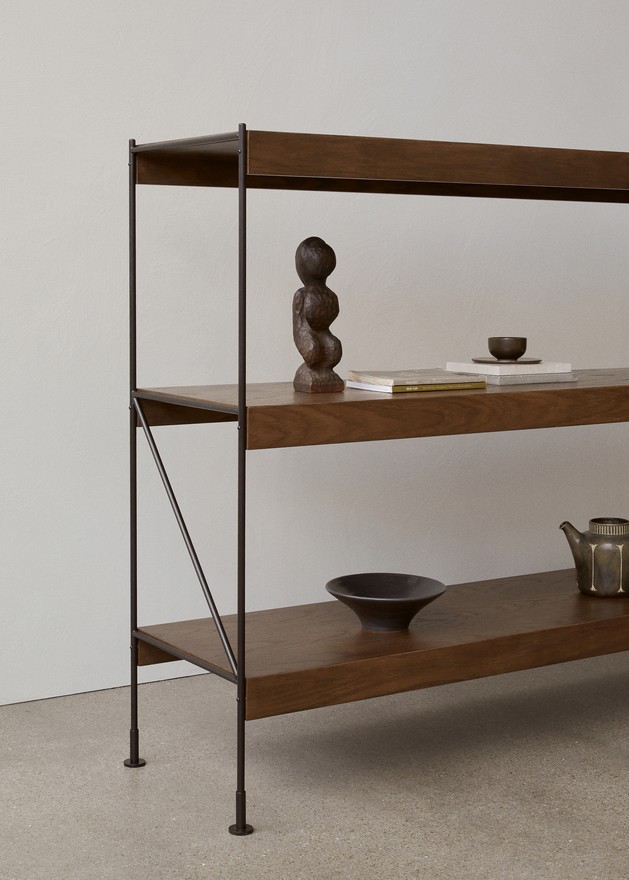 Стеллаж выполнен в современном стиле. Его отличают лаконичные формы. Цвета Dark Stained Oak, Black Oak и Black Steel Base подчеркивают изысканность. Они позволяют стеллажу гармонично вписаться в любой интерьер.