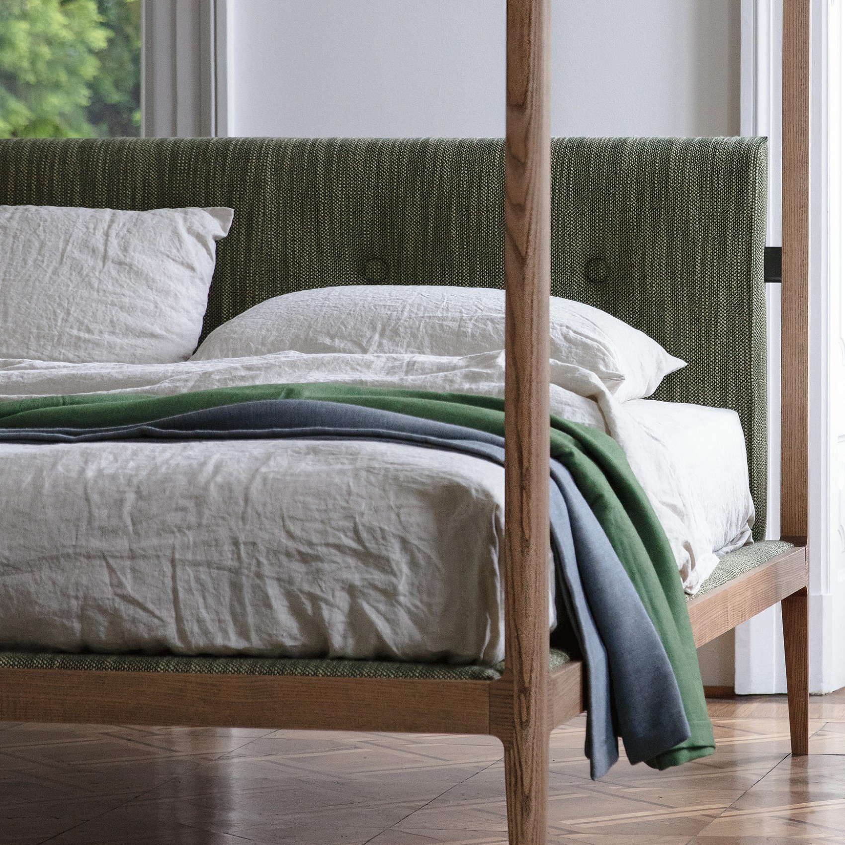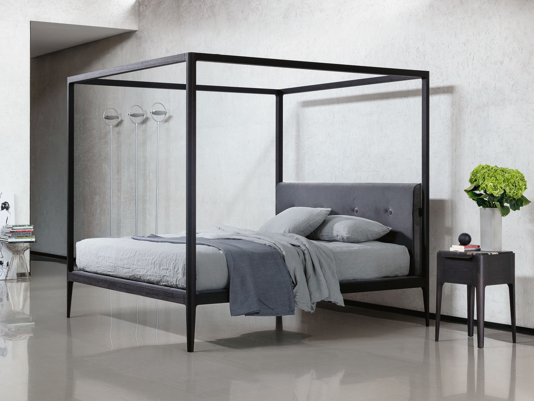 Кровать Ziggy baldacchino с балдахином является воплощением аристократичной элегантности и изысканного уюта. Она продолжает традиции, заложенные моделью Ziggy, предлагая утончённое сочетание материалов и дизайна. Основой конструкции служит массив дерева — ореха Canaletta или ясеня, который придаёт кровати прочность и долговечность.