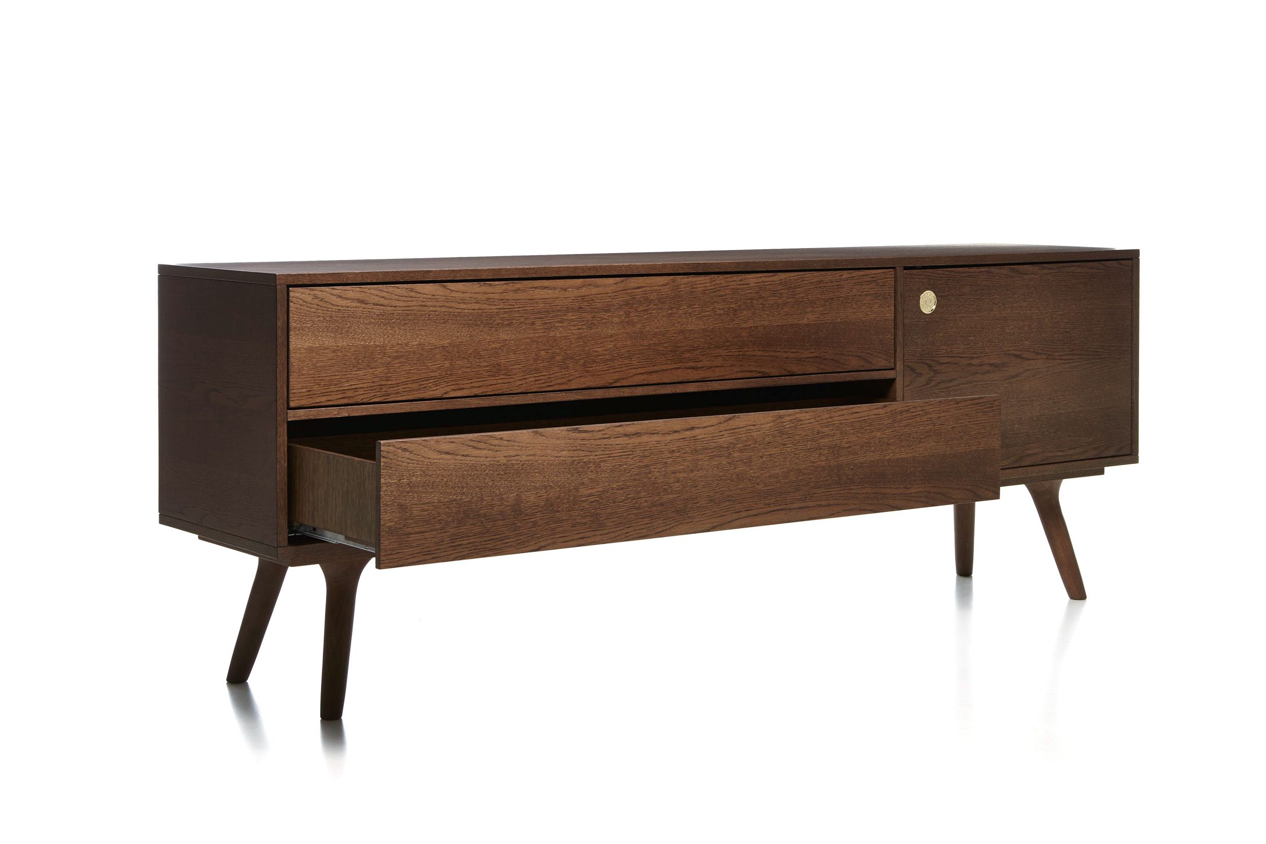 Коллекция Zio состоит из кресел, стульев, обеденных и журнальных столиков, а также из комодов и подставок для ног. Комод Zio выполняется из массива дуба. Дверцы на магните. Подробную информацию о данной модели уточняйте у менеджеров или в PDF инструкции.